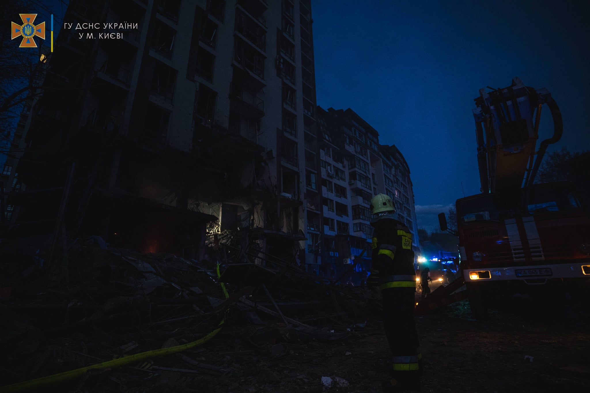 Під час обстрілу Києва окупанти влучили у багатоповерхівку в Шевченківському районі. З-під завалів рятувальники дістали тіло однієї людини.