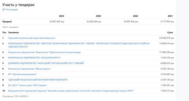 Від своєї філії не відстає й материнська компанія – ТОВ «Інфокс». Вона також виграла за цей період 110 тендерів загальною вартістю 77 763 977 гривень.