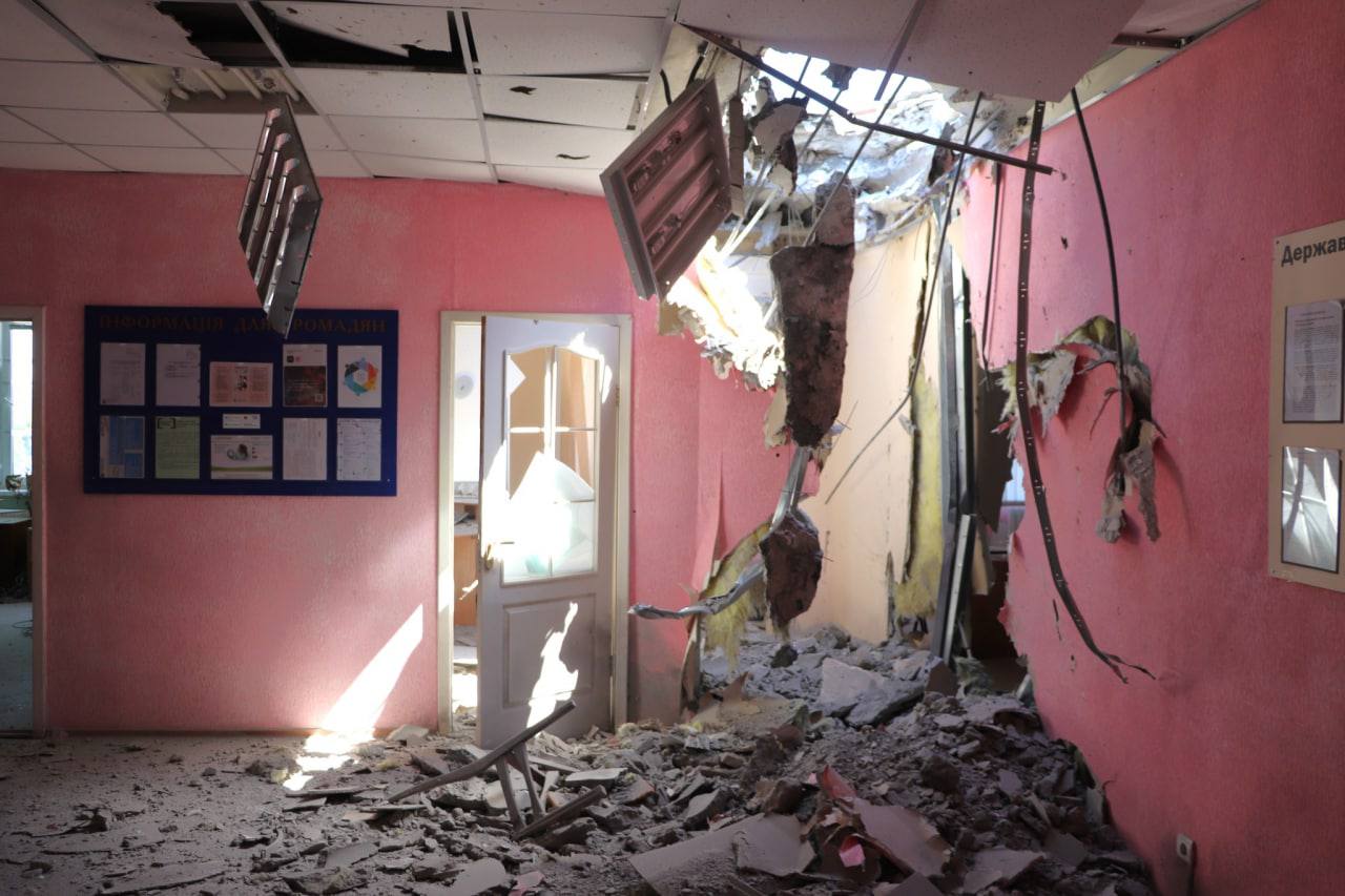 Російські окупанти пошкодили гуманітарний штаб, приміщення РАЦСу, частину поліклініки та будівля швидкої допомоги в Дергачах Харківської області, в результаті чого загинуло дві людини, ще четверо - поранені.