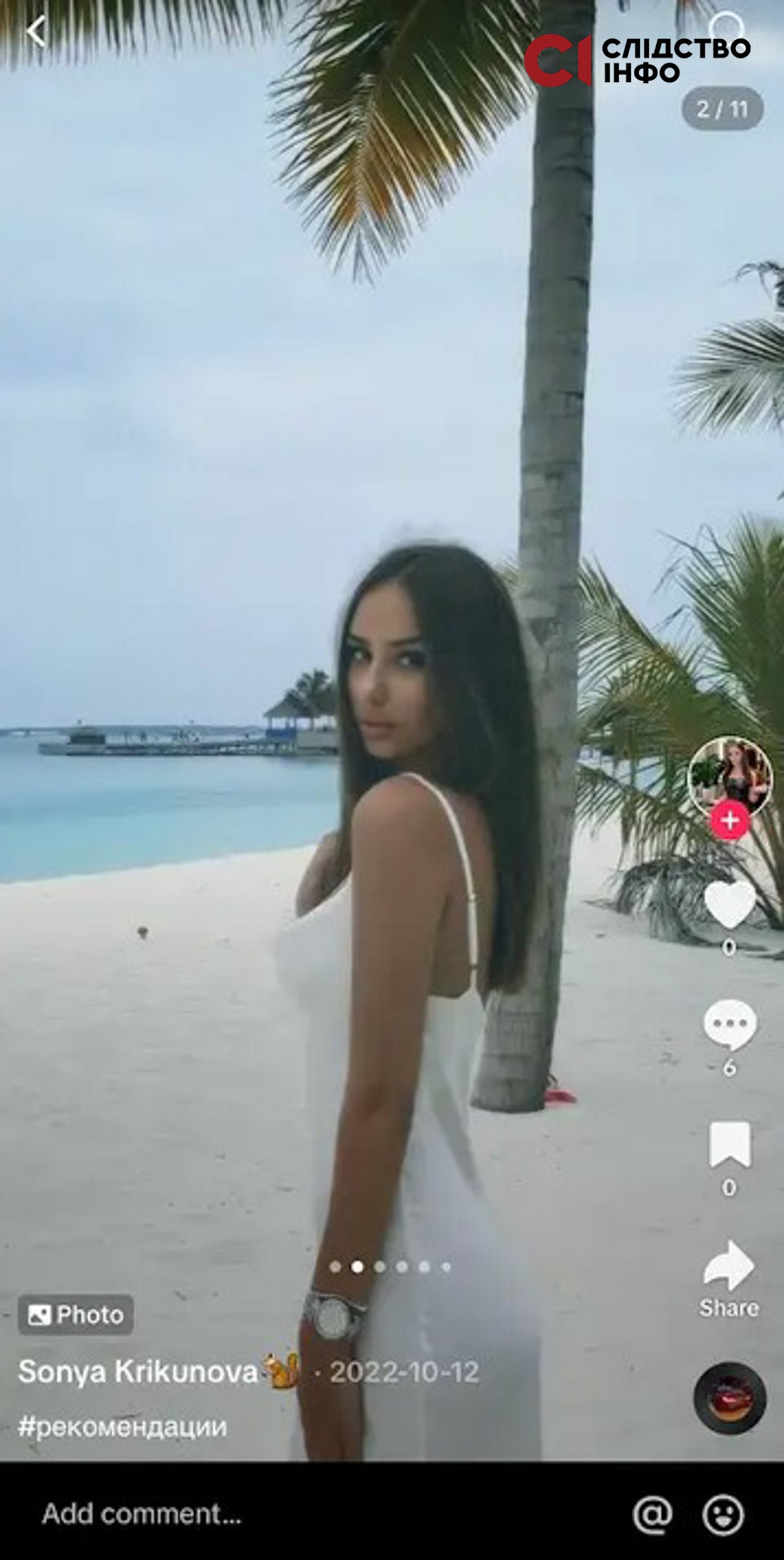 Журналісти «Слідства.Інфо» знайшли соціальні мережі Крікунової, а у них — багато цікавого. Зокрема, гумористичні відео з підписами: «Папуля, скинь денег».