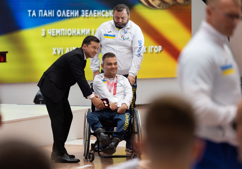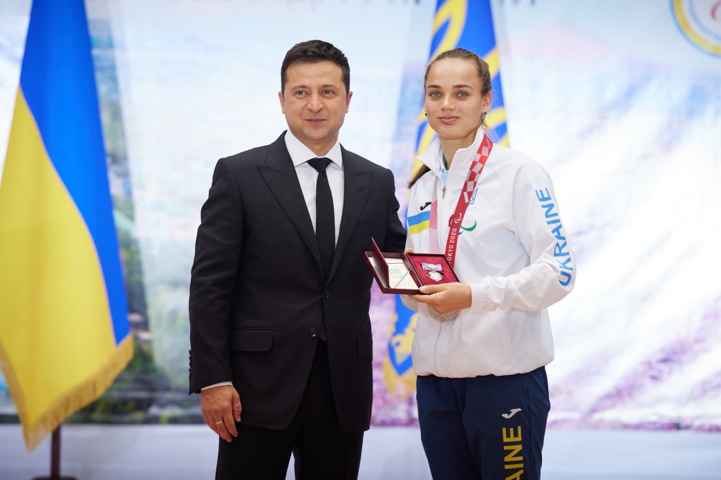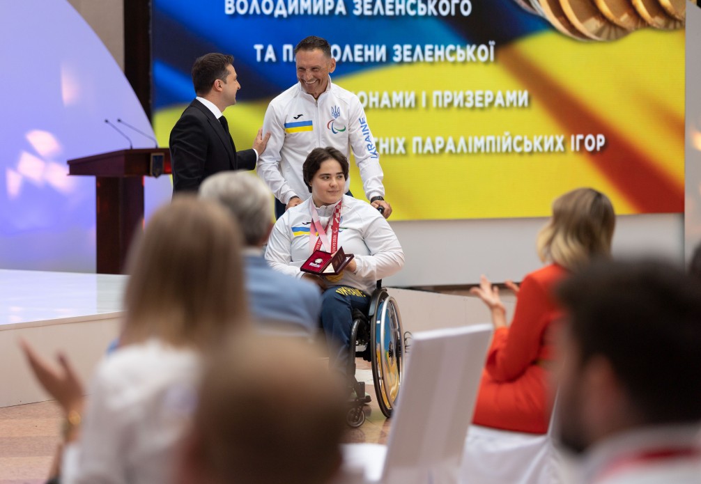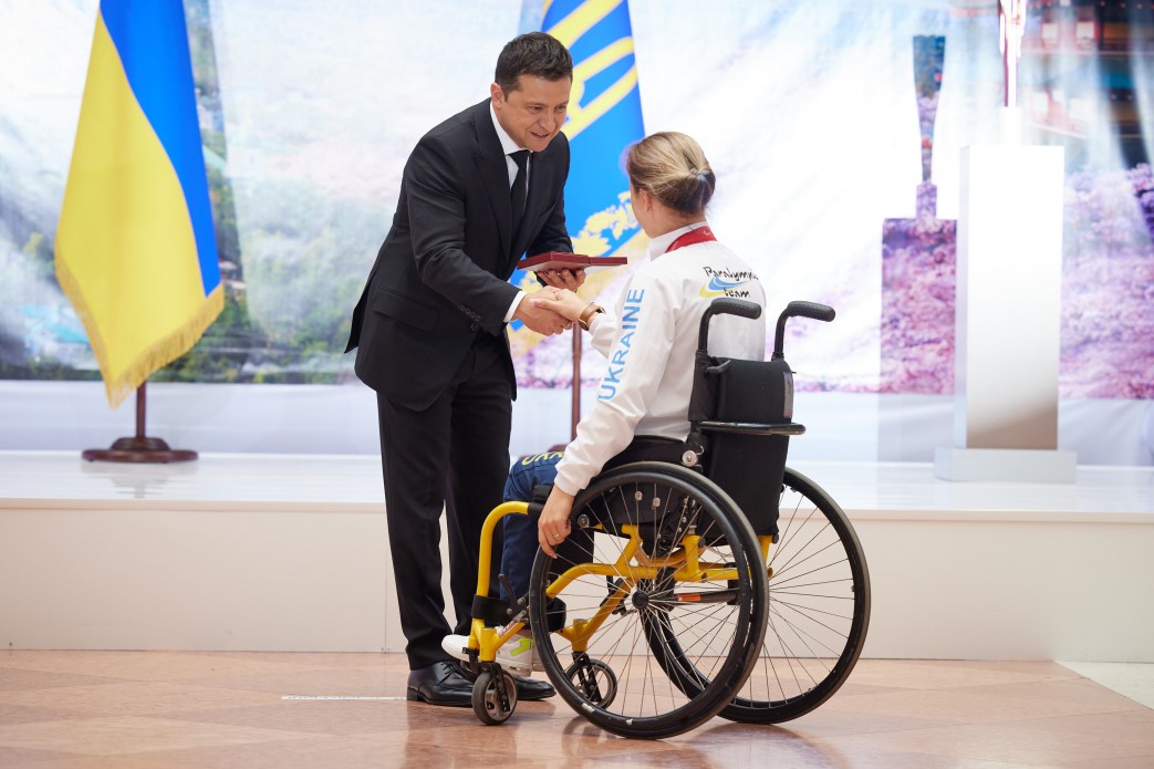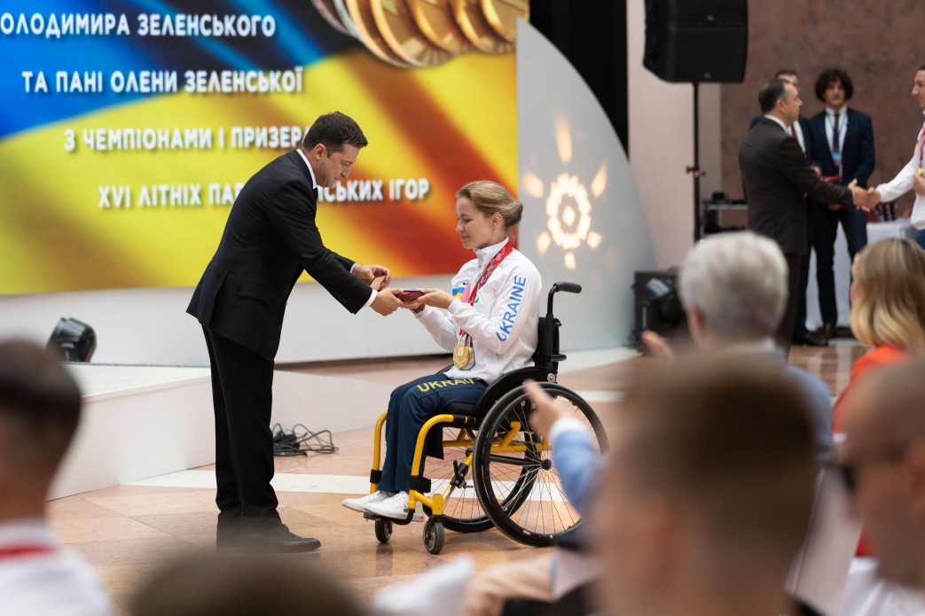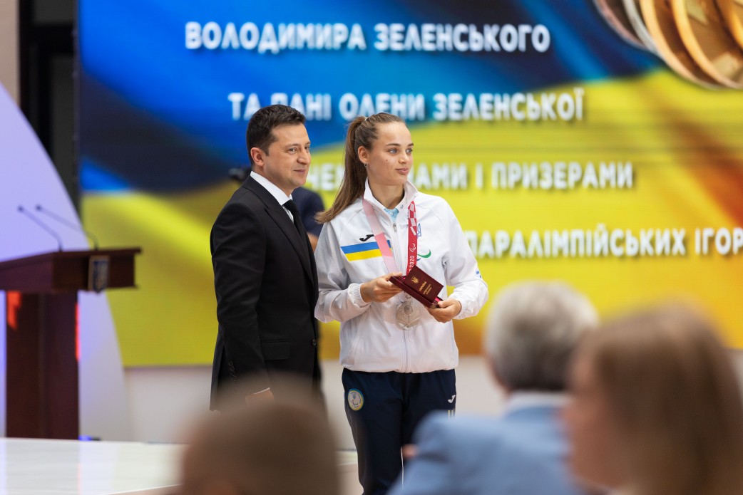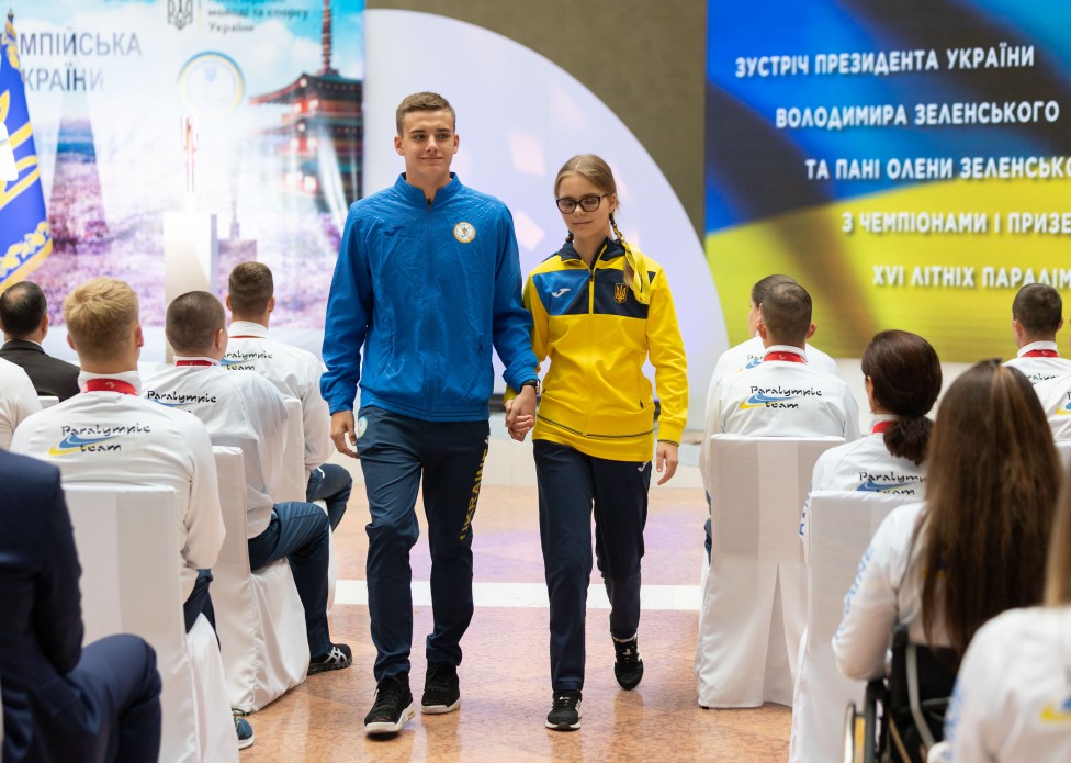Президент України Володимир Зеленський разом з дружиною Оленою зустрівся зі спортсменами української збірної – чемпіонами та призерами ХVI літніх Паралімпійських ігор – 2020 у Токіо.