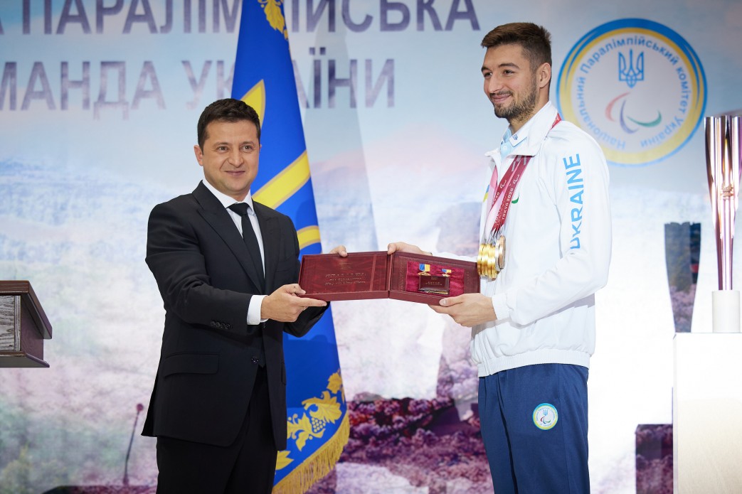 Президент надав звання Героя України з врученням ордена Держави плавцю Максиму Крипаку, який на XVI літніх Паралімпійських іграх у Токіо завоював п'ять золотих, срібну та бронзову медалі. Він встановив новий світовий рекорд на дистанції 100 м вільним стилем з результатом 50,64 секунди, покращивши на 0,23 секунди попередній рекорд, який належав спортсмену з Бразилії та протримався 11 років.