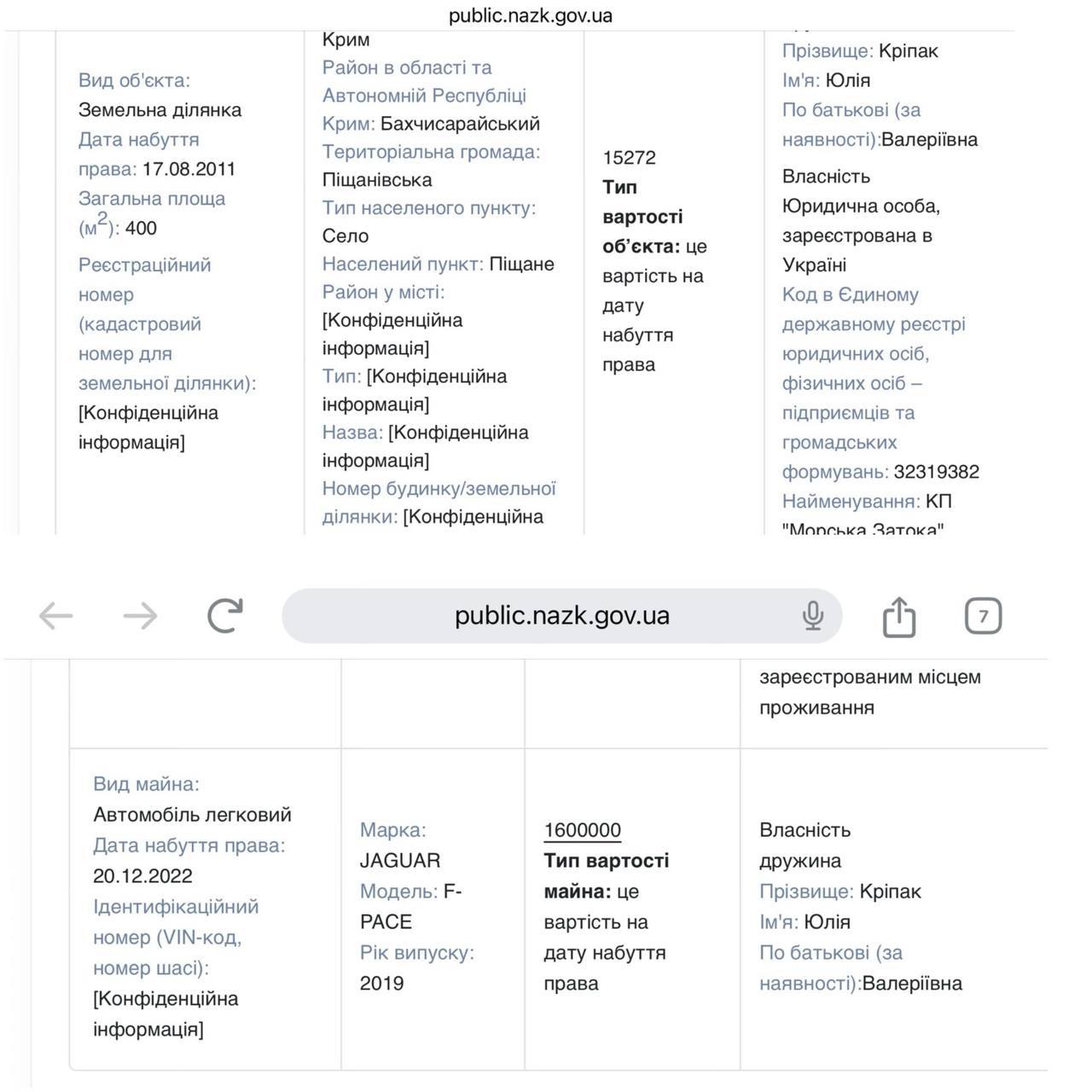 Ще цей "слуга" досі має бізнес в окупованому Криму, де на його дружину оформлено земельну ділянку під будівництво в Бахчисарайсьому районі. Перед початком війни, Кріпак відвідував Крим для координації будівельного бізнесу, де зупинявся в своєму будинку не внесеному в декларацію.