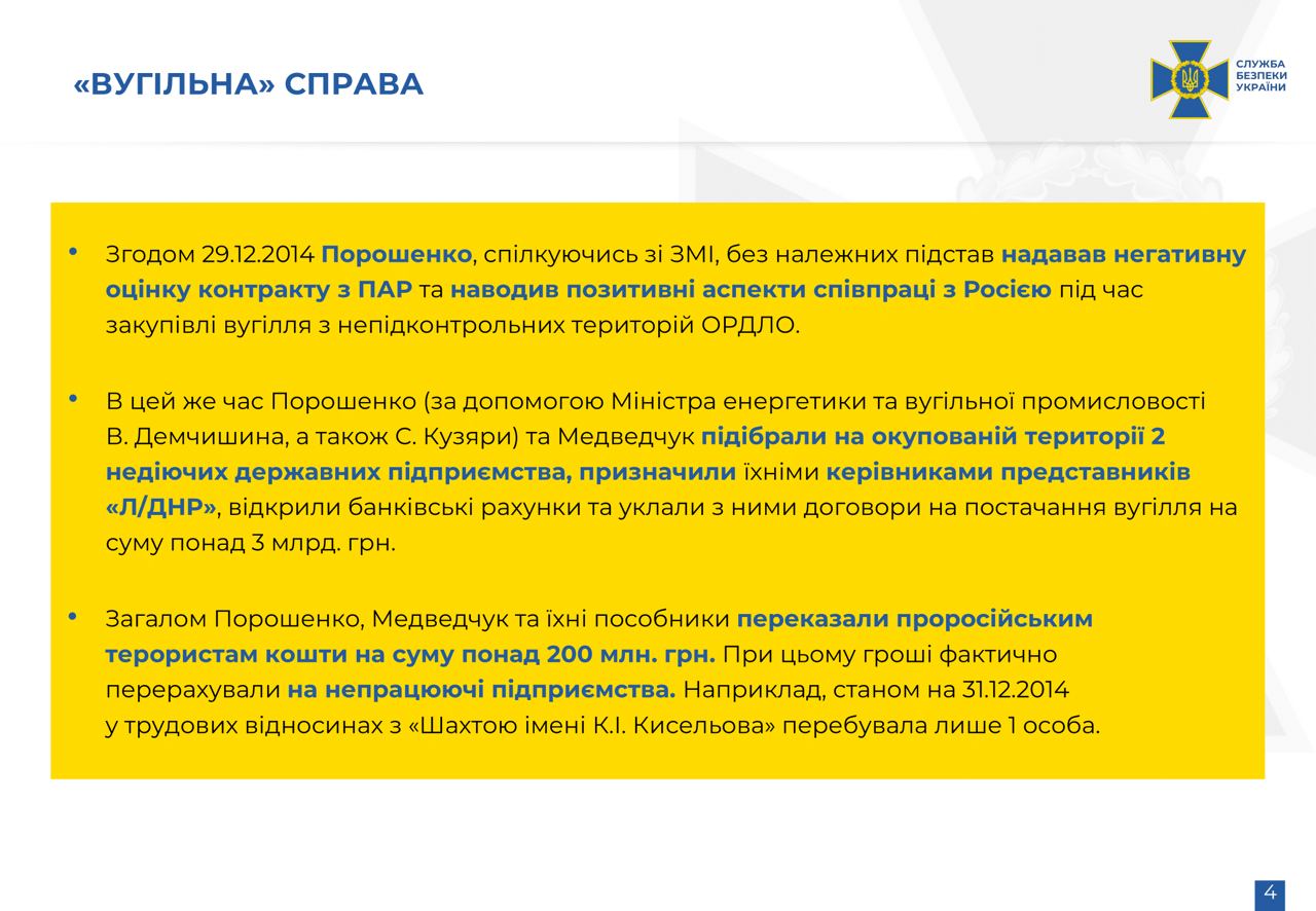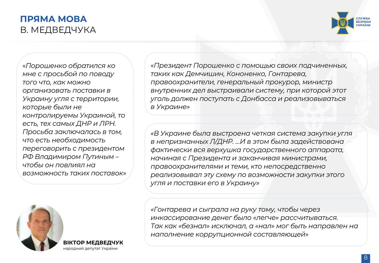 А щодо "вугільної" та "трубної" справ, то Медведчук підтверджує ключову роль у них Петра Порошенка.