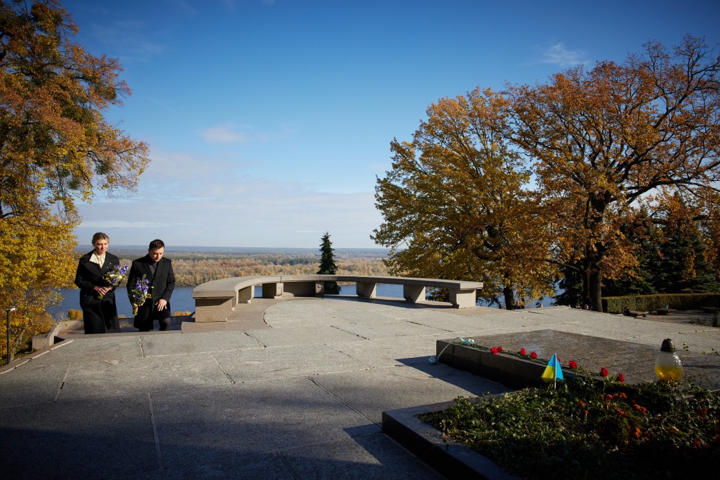 У пресслужбі Зеленського повідомили також, що у межах робочої поїздки на Черкащину президент і перша леді вшанували пам’ять класика української літератури, письменника, мислителя, художника Тараса Шевченка.