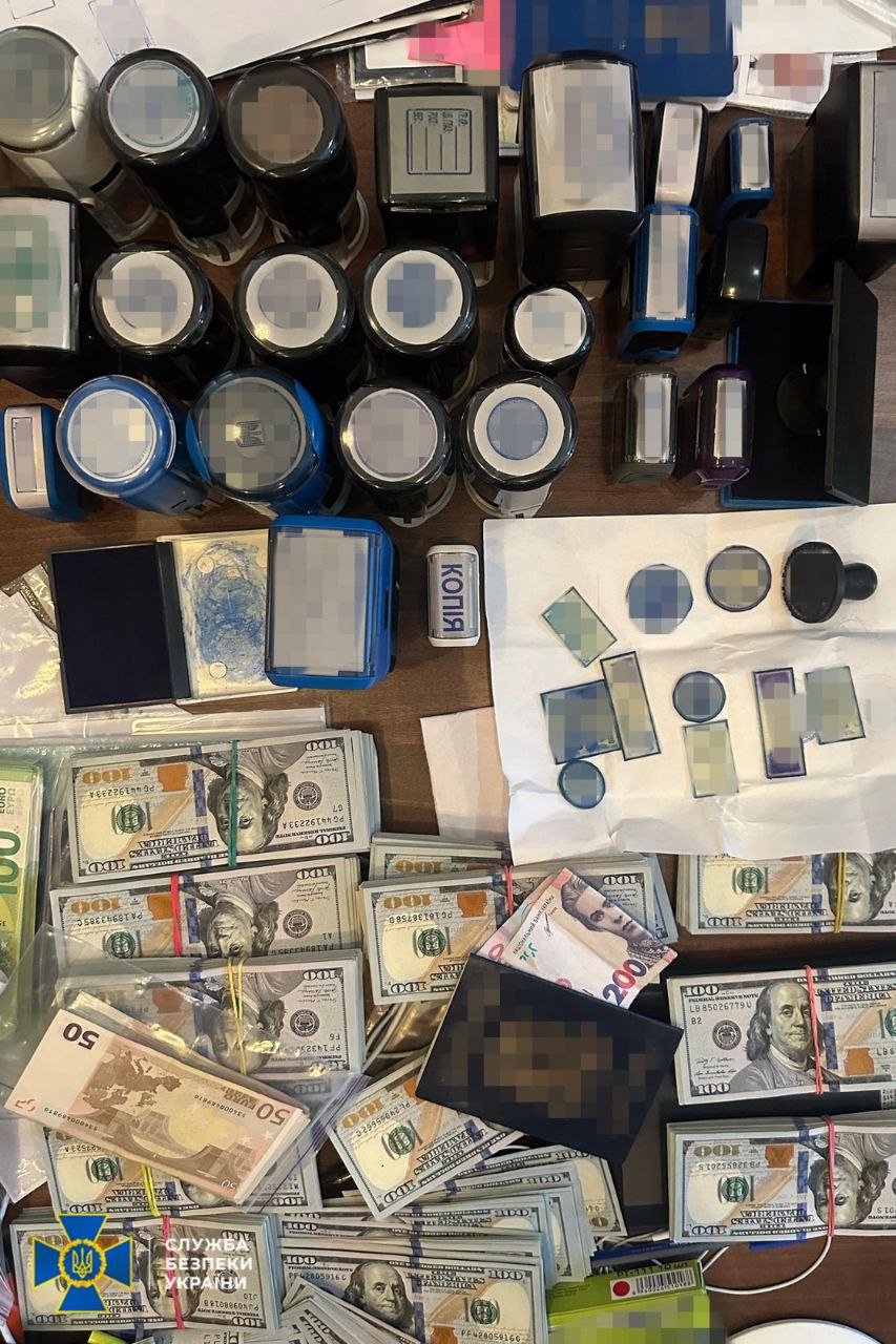 Під час 57 обшуків, проведених у місцях роботи та проживання підозрюваних, було вилучено значні суми грошей – понад 300 тисяч доларів США та більше 60 тисяч євро, а також близько 200 печаток і штампів, які використовувалися для оформлення фальшивих документів. Загалом, за даними слідства, було здійснено понад 150 замовлень на виготовлення документів за цією схемою.