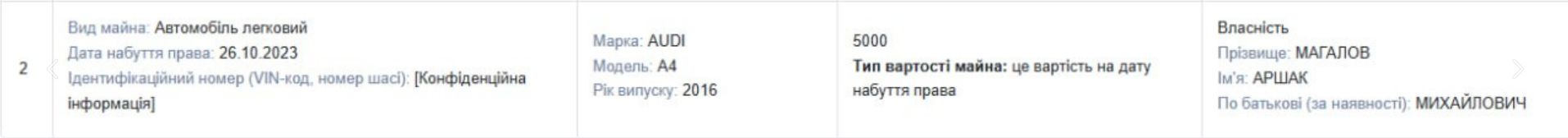 Заступник генерального директора комунального об’єднання "Київзеленбуд" Аршак Магалов у 2023 році задекларував придбання автомобіля AUDI A4 2016 року випуску за 5 тисяч гривень. Про це повідомляє "Слідство.Інфо".