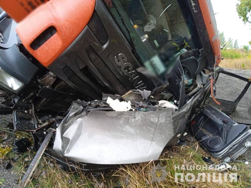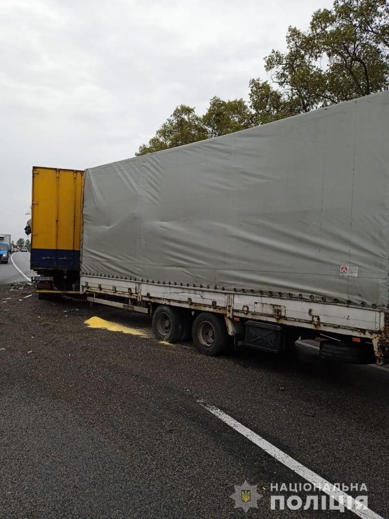 Попередньо поліціянти встановили, що 38-річний кермувальник автомобіля Hyundai виконував обгін вантажного автомобіля MAN та здійснив зіткнення із вантажівкою Scania, під керуванням 23-річного водія.