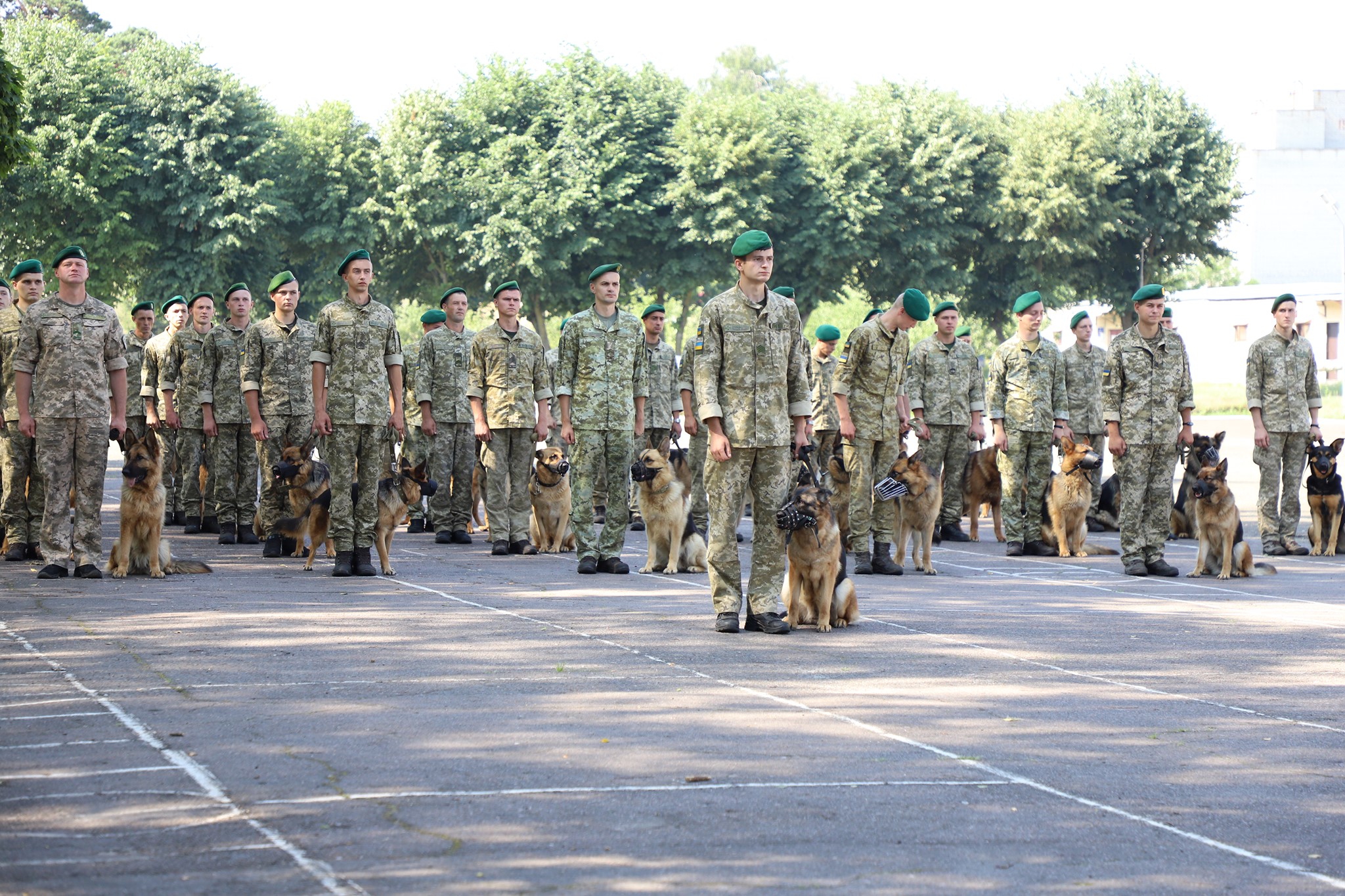 Підготовка парадного розрахунку кінологів та їх чотирилапих напарників уже розпочалась на базі Кінологічного навчального центру Державної прикордонної служби України у Великих Мостах на Львівщині.