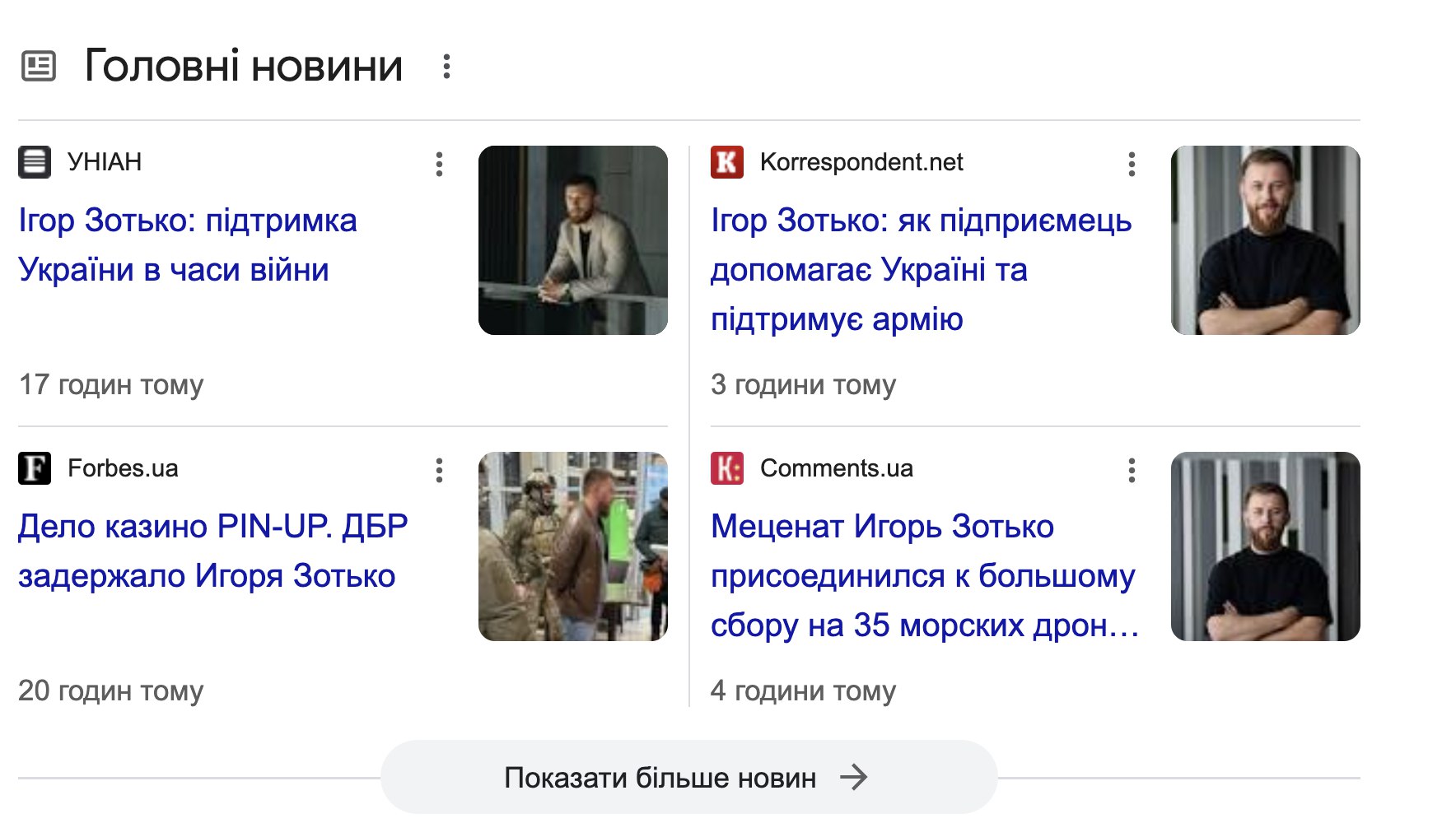 У результаті розслідування було виявлено факти пособництва представників Pin-Up державі-агресору. Відомо, що компанія Зотька «УКР ГЕЙМ ТЕХНОЛОДЖІ» з 2022 по 2024 роки перерахувала компанії російських власників казино Pin-Up «GURUFLOW TEAM LTD» понад 260,13 млн гривень (кошти платили як ліцензійні платежі за програмне забезпечення).