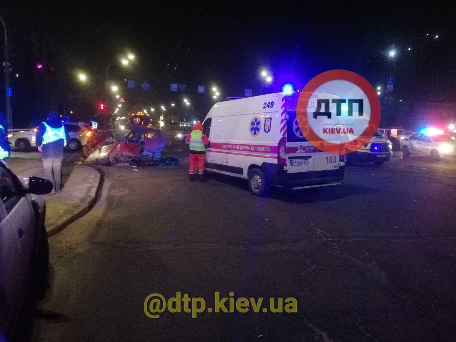 Очевидці аварії кажуть, що автомобіль Skoda під'їхав до світлофора, на якому загорівся забороняючий сигнал. у цей час в задню частину Skoda в'їхав позашляховик Toyota Land Cruiser.