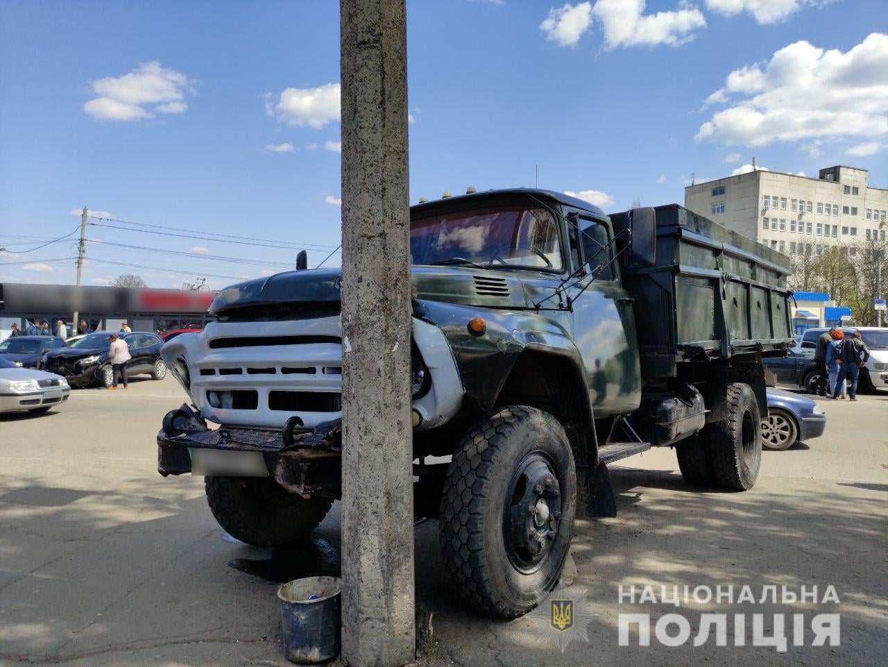 Вантажівку змогла зупинити тільки електроопора, що поруч зупинки громадського транспорту. На щастя, ніхто з людей не постраждав.