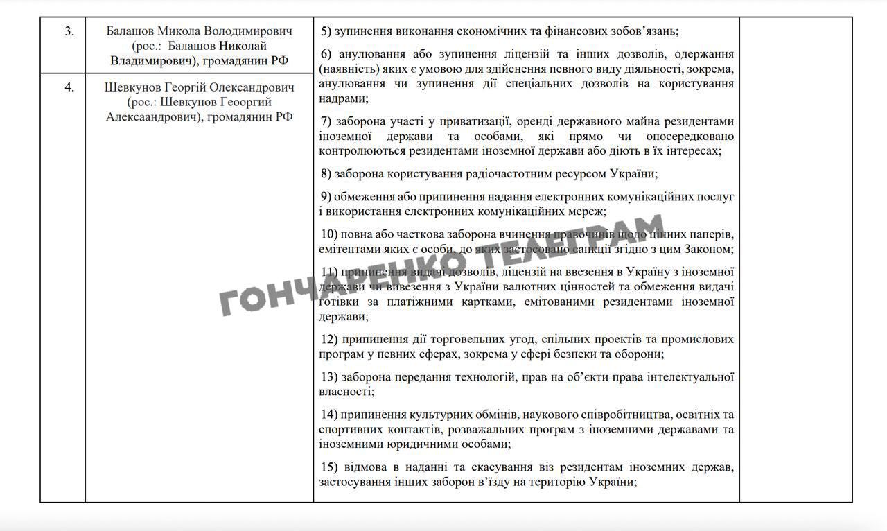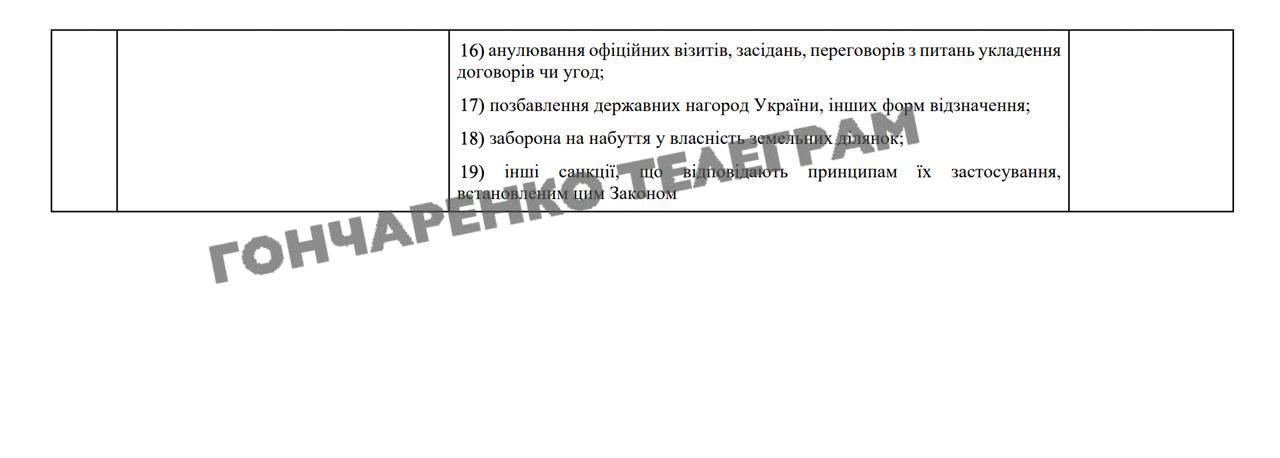 Народний депутат Олексій Гончаренко повідомляє, що санкції пропонується ввести на період 10 років.