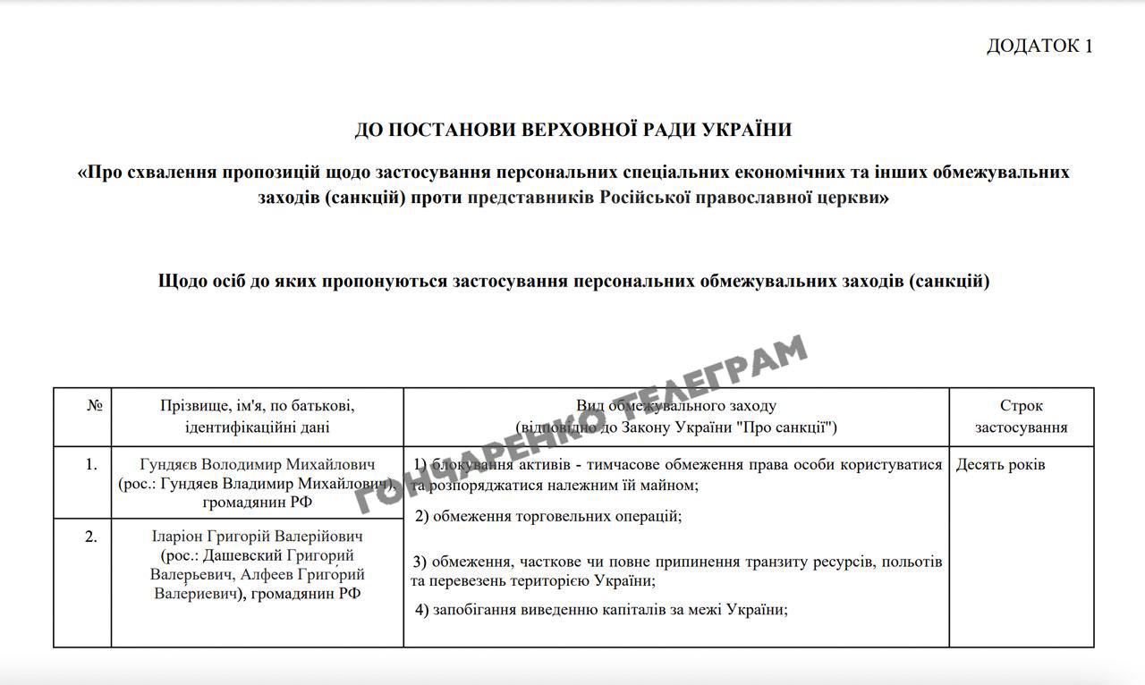 Парламент звернувся до РНБО з вимогою застосування персональних санкцій проти церковних діячів РПЦ, які системно та активно підтримують війну проти України, у списку вісім осіб, - написав він.
