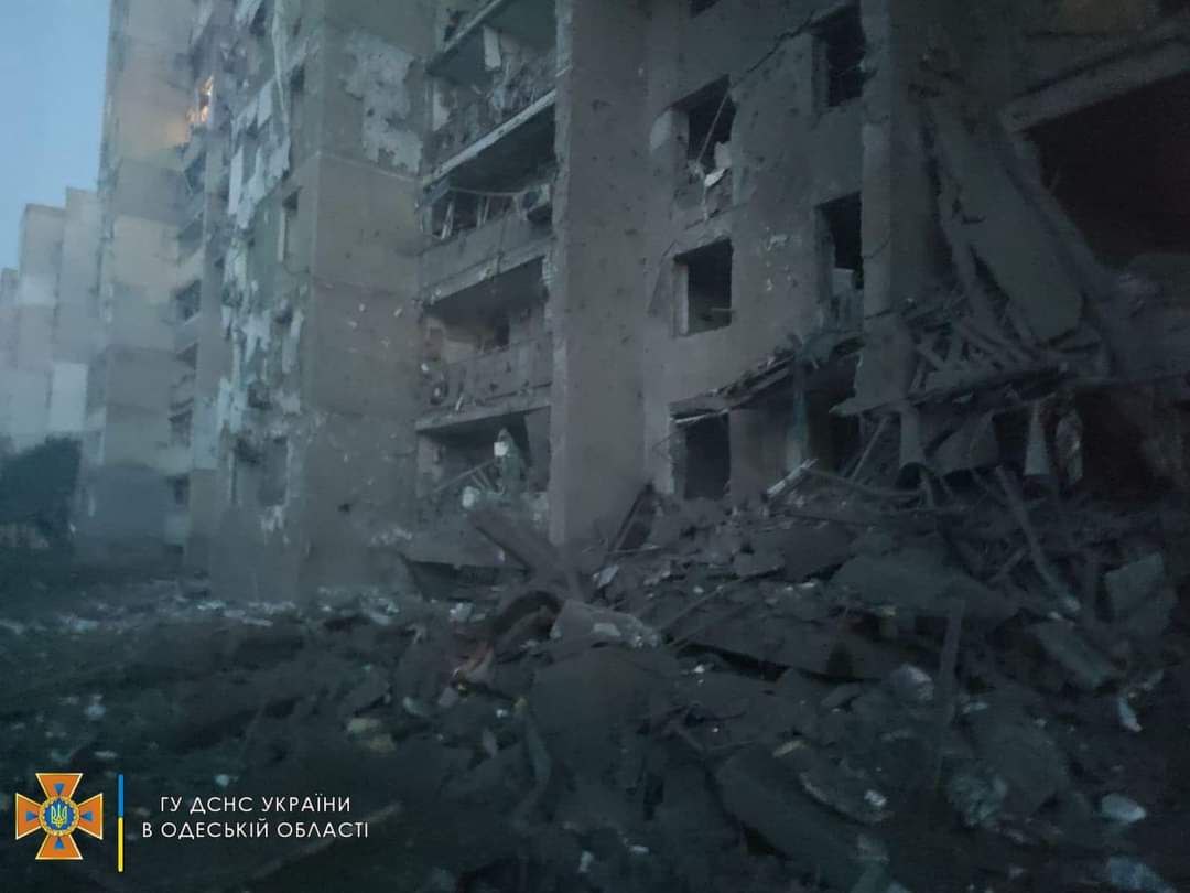Також 1 липня близько 01:00 у Білгород-Дністровському районі внаслідок ракетного удару сталося часткове руйнування дев’ятиповерхового житлового будинку з подальшим загоранням прибудованого до нього магазину на площі близько 20 м кв.