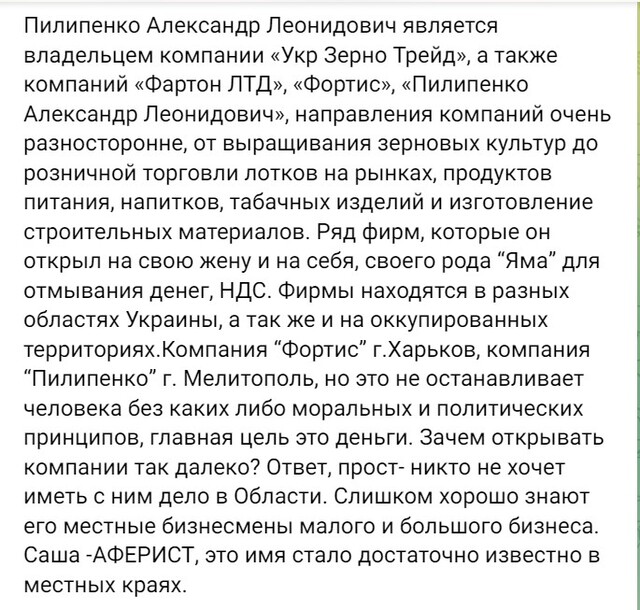 Ну та гаразд. Історія давня. А ось – свіже. Як пише ТГ-канал МАЙМАН, насправді Олександр Пилипенко – досить великий латифундист, схильний до рейдерських захоплень, обману, податкових скруток і кидалова.