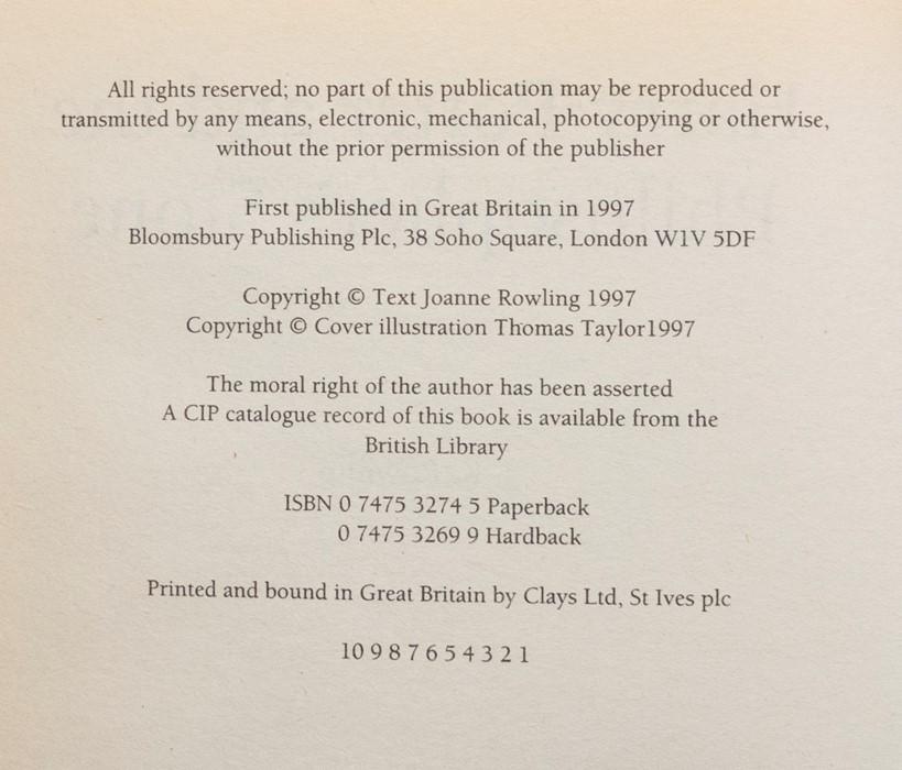 Зазначимо, що перший тираж складався лише із 500 екземплярів, виданих Bloomsbury у 1997 році (300 із них, як вважають, пішли до бібліотек, тож 200 залишається "на руках").