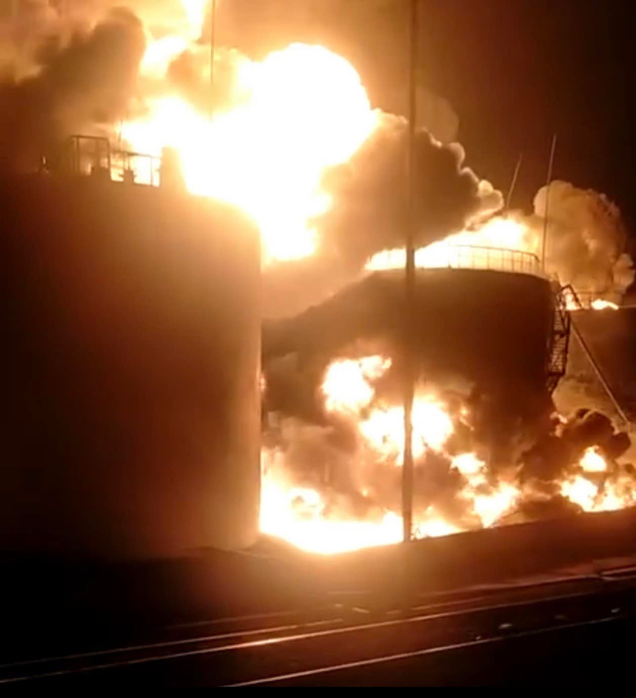 Зазначили, що внаслідок удару розливу нафтопродуктів за межі обвалування немає.