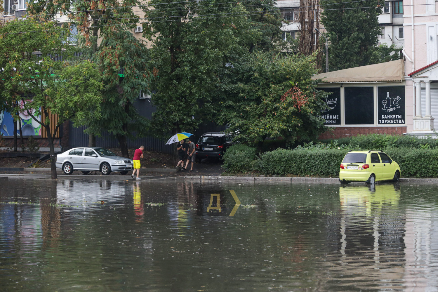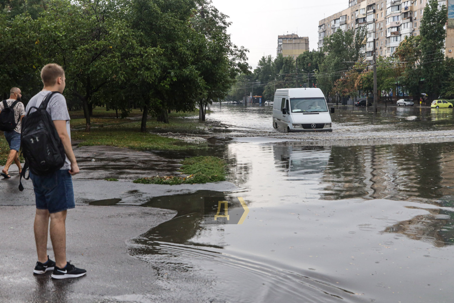 Після рясних опадів частина вулиць Одеси була непроїзною - автівки затоплювало майже "по вінця".