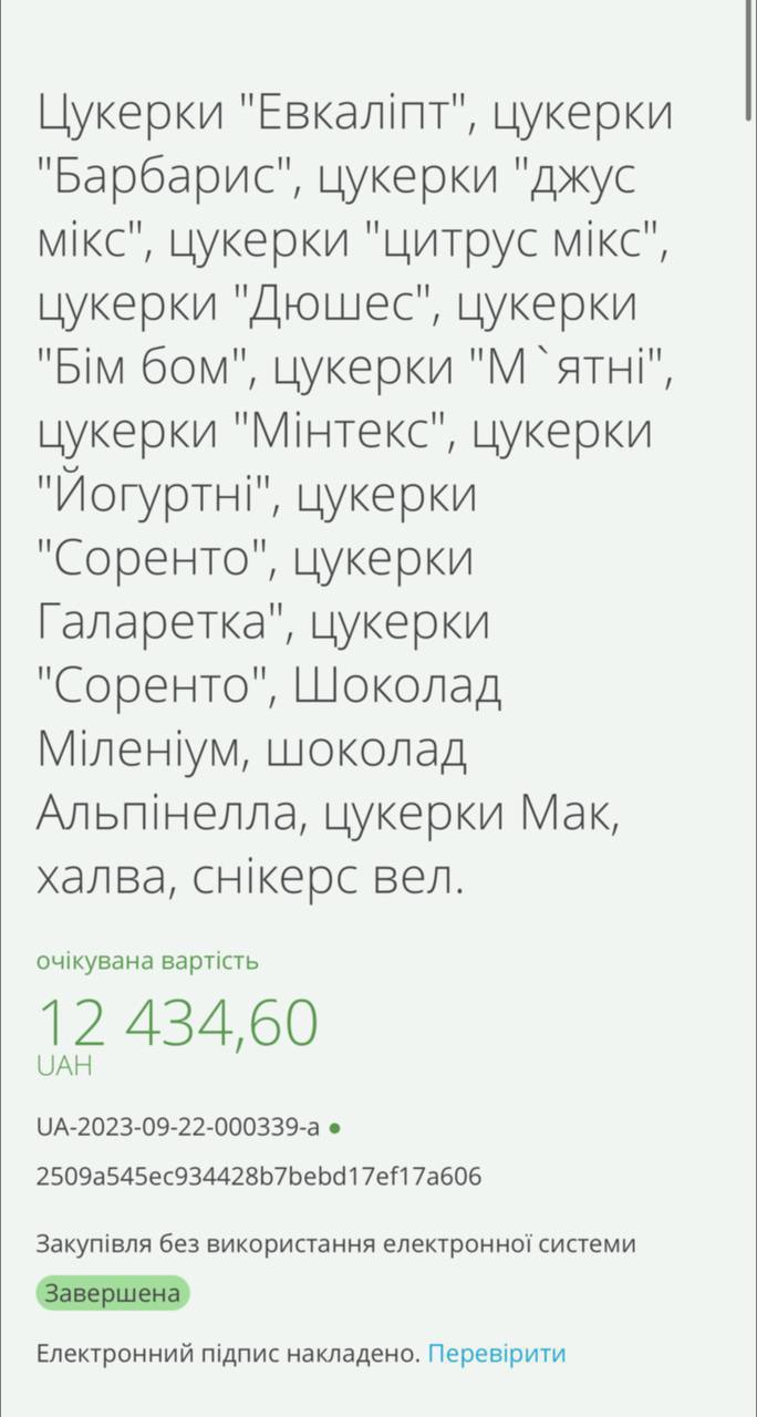 У цьому раціон окупантів не обмежився. Також для військовополонених закупили ковбасу різних видів на 13 635 грн, крем-суп та картопляне пюре за 3450 грн, 440 г згущеного молока вартістю 4500 грн, а ще цукерок різних видів на 12 434 грн.