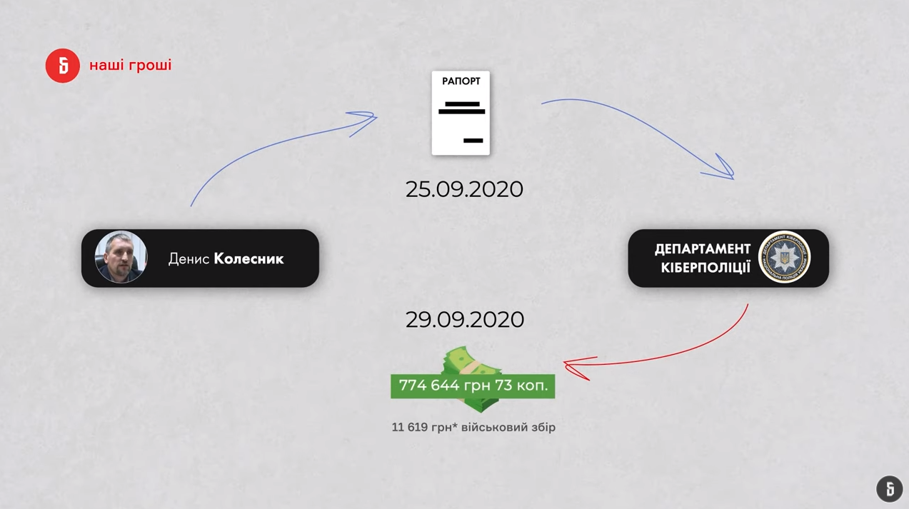 Чоловік генеральної прокурорки України Ірини Венедіктової Денис Колесников звільнився з посади заступника начальника Департаменту кіберполіції, отримав 750 тисяч гривень від Кіберполу і продовжив їздити на роботу.