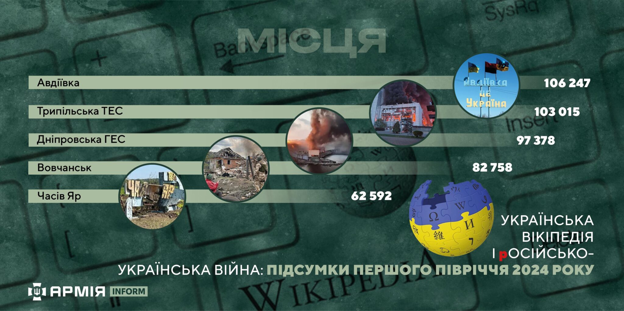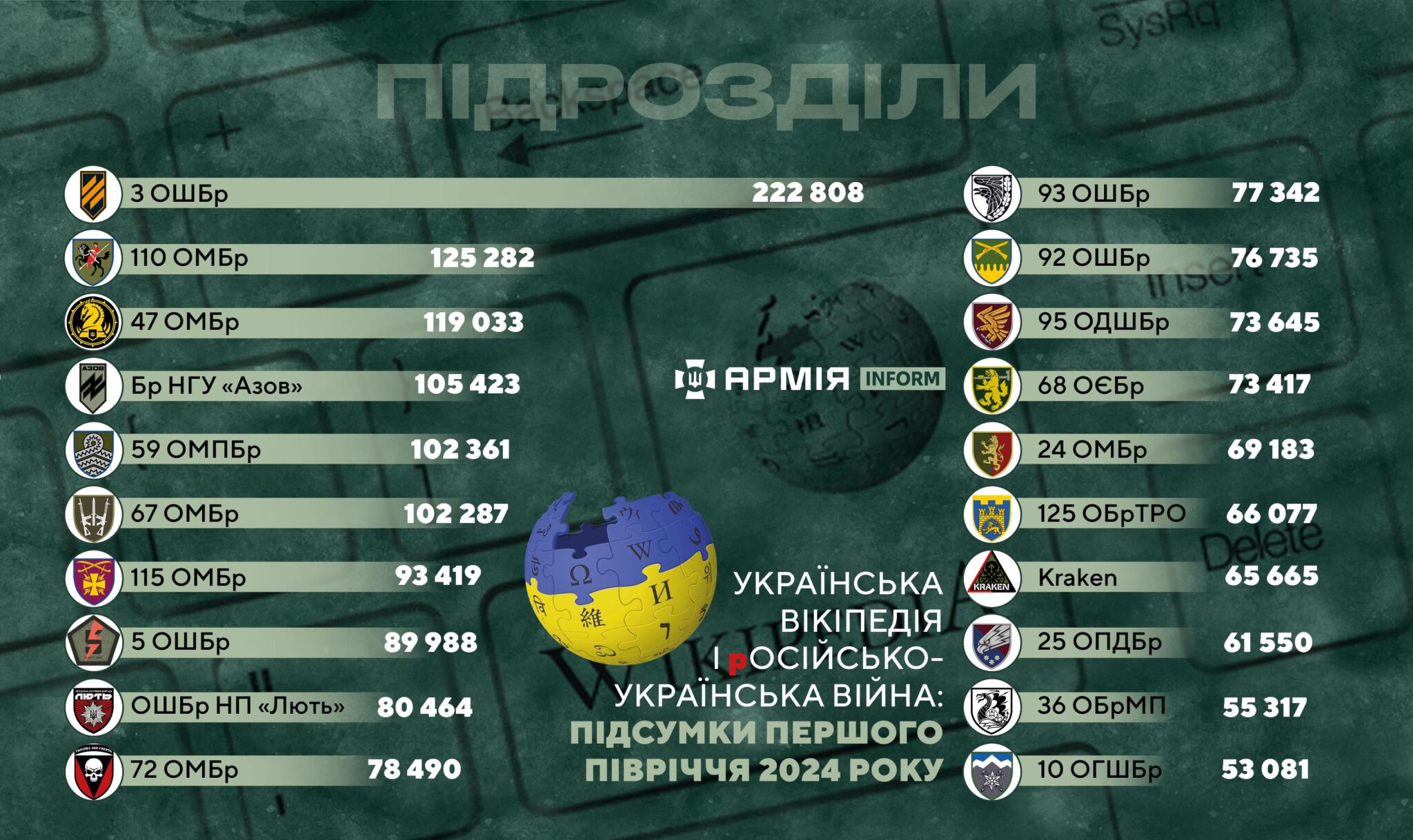П'ятірка найпопулярніших статей української Вікіпедії на військову тематику у першому півріччі 2024 року виглядає так:
