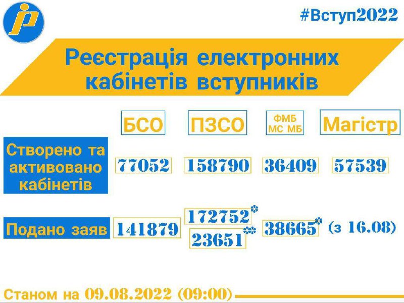 Усупереч військовій агресії рф, в Україні триває вступна кампанія. Незламні вступники обирають українську освіту. Станом на 9 серпня 2022 року для вступу до ЗФПО та ЗВО створено і активовано майже 330 тис. електронних кабінетів. Подано понад 376 тис. електронних заяв, - сказав Сергій Шкарлет.