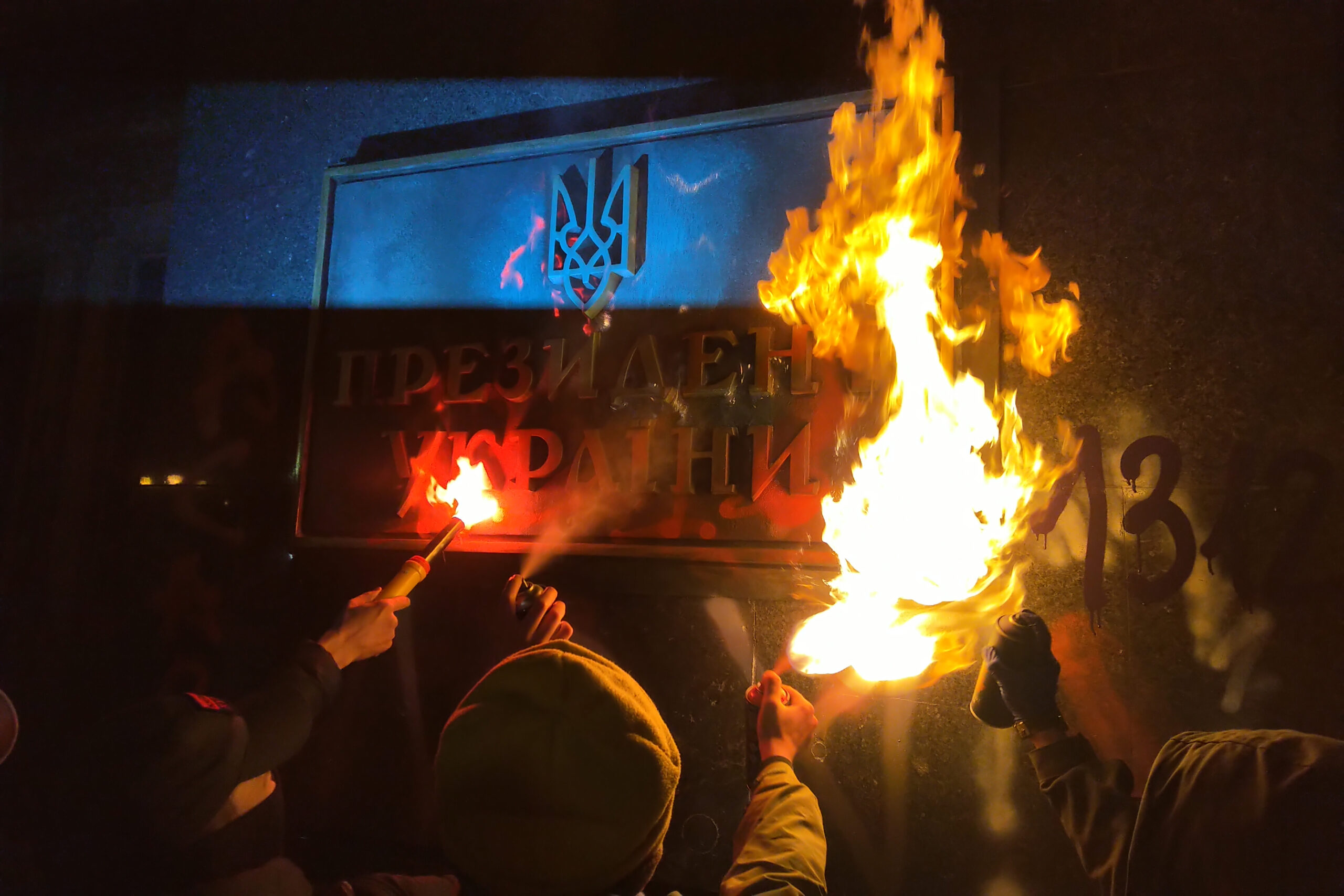 Контекст. 20 березня під стінами Офісу президента на вулиці Банковій у Києві відбулася чергова акція протесту у підтримку засудженого активіста Сергія Стерненка. Протестувальники побили вікна та двері будівлі ОП, закинули усередину димову шашку та фаєри.