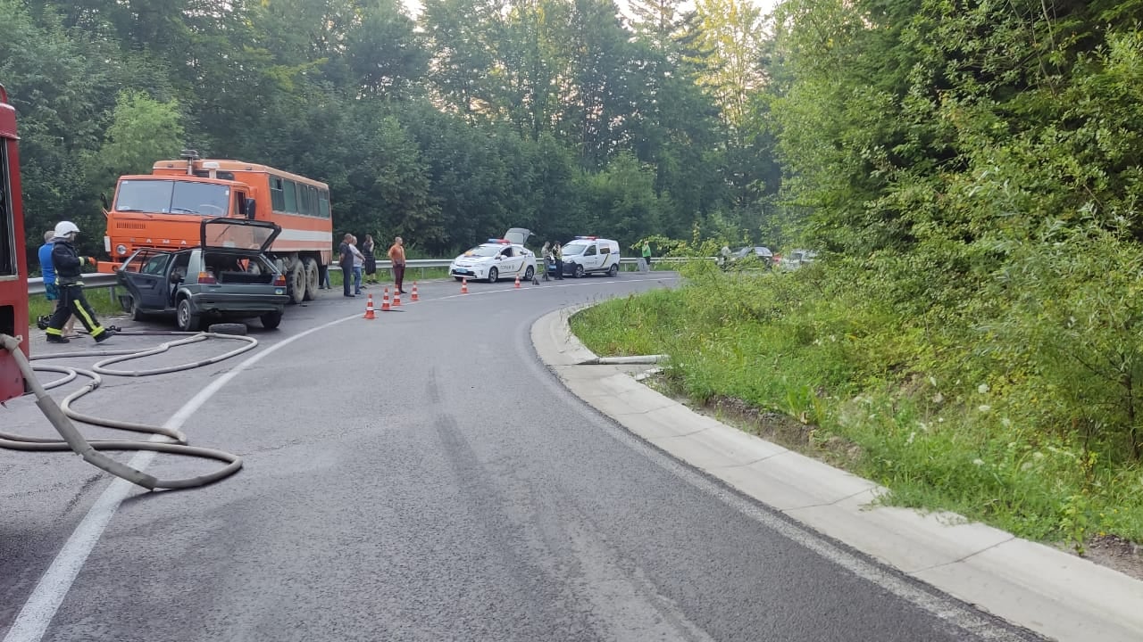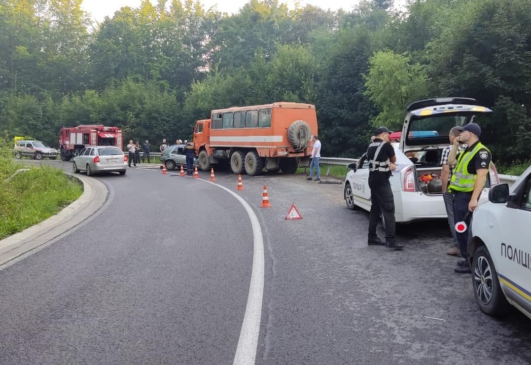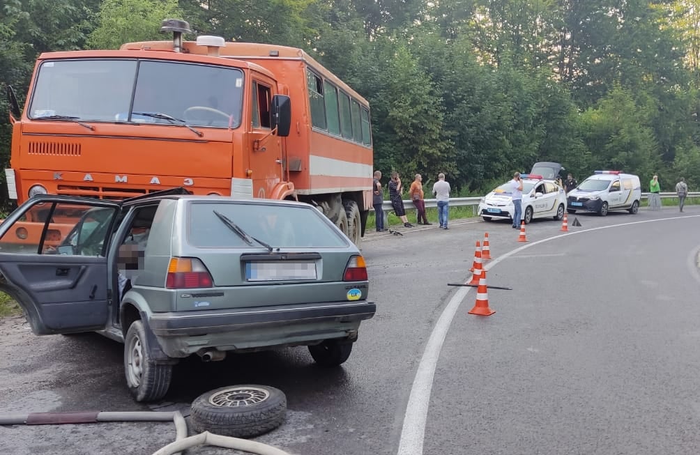 Поліція Львівської області повідомляє, що водій автомобіля Volkswagen Golf, 49-річний мешканець одного з сіл Дрогобицького району, виїхав на зустрічну смугу де скоїв зіткнення з автомобілем "Камаз" під керуванням 47-річного жителя Борислава.