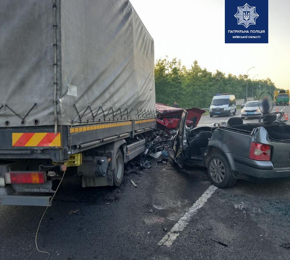 Як повідомляє Патрульна поліція, на 49 км автодороги в Бучанському районі зіштовхнулися вантажівка Mercedes та легковик Volkswagen.