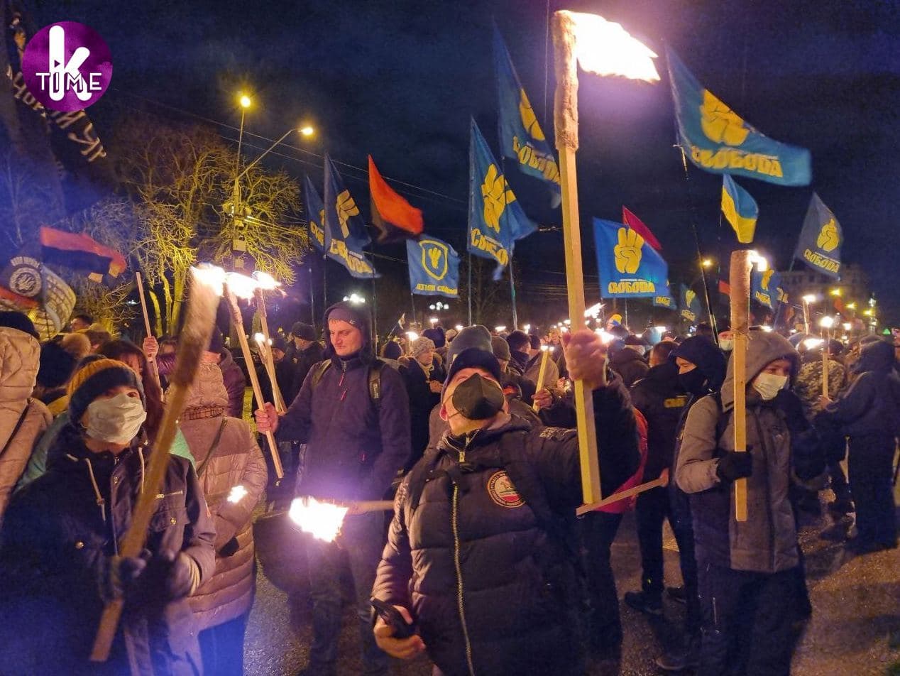 Зокрема, у Києві відбулася смолоскипна хода - маршрут розпочався від пам'ятника Тарасу Шевченку, потім активісти пройшли по вулиці Володимирській, бульвару Тараса Шевченка, по Хрещатику та дійшли до Майдану Незалежності, де відбувається віче.