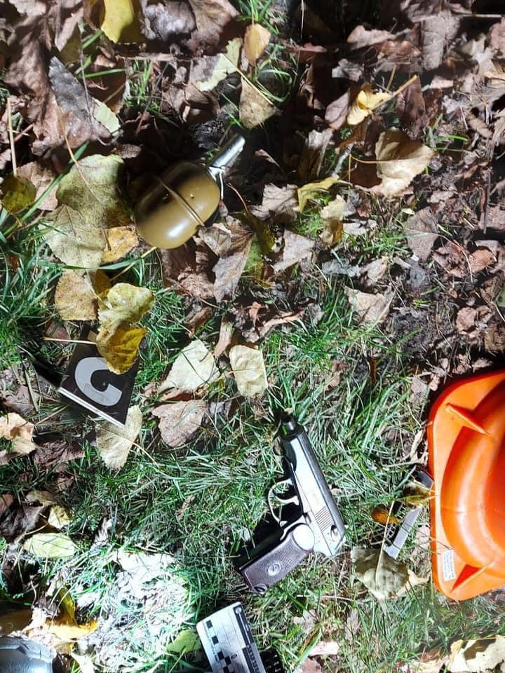 Інспектори затримали трьох утікачів неподалік місця зупинки автомобіля. У одного з них виявили пістолет та гранати. Патрульного шпиталізували медики. Інші учасники події поранень не отримали. Обставини події встановлюються.