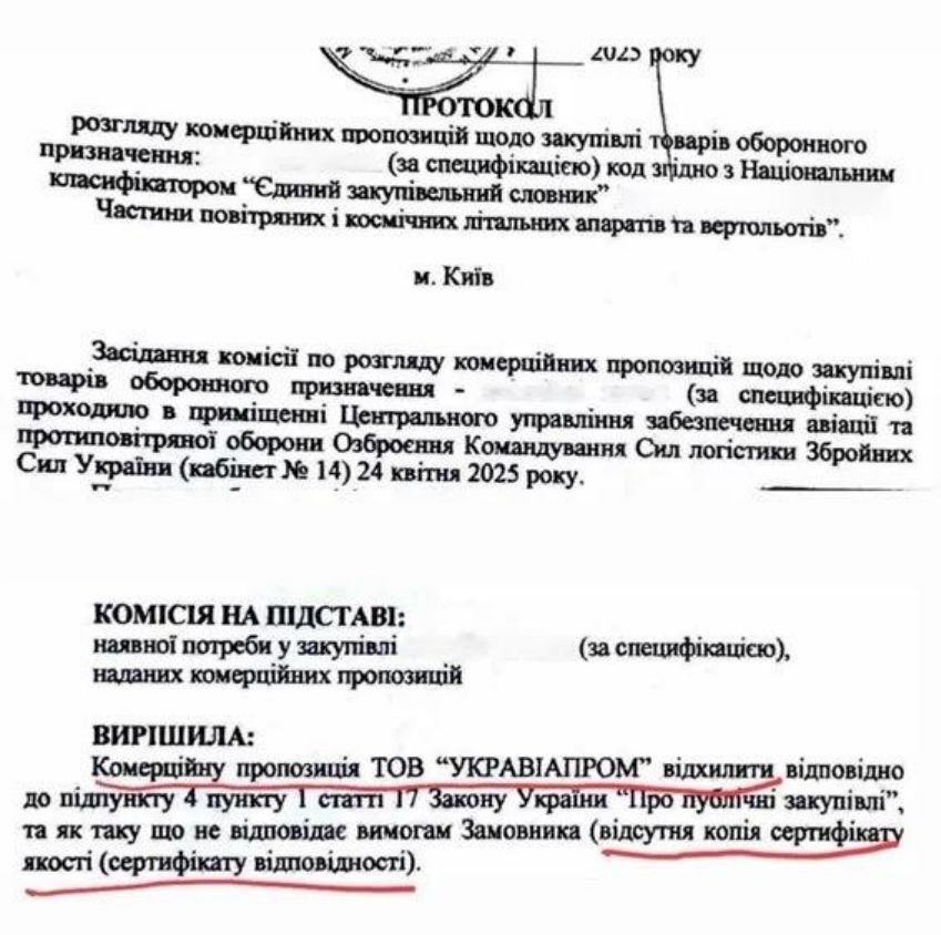 За інформацією джерел, перша спроба постачання неякісної продукції була зафіксована ще у 2022 році, але завдяки пильності службовців ЗСУ постачання вдалося запобігти. Подібні випадки повторювалися у 2024 та 2025 роках, коли ТОВ "Укравіапром" знову подавало на тендер сумнівні документи.