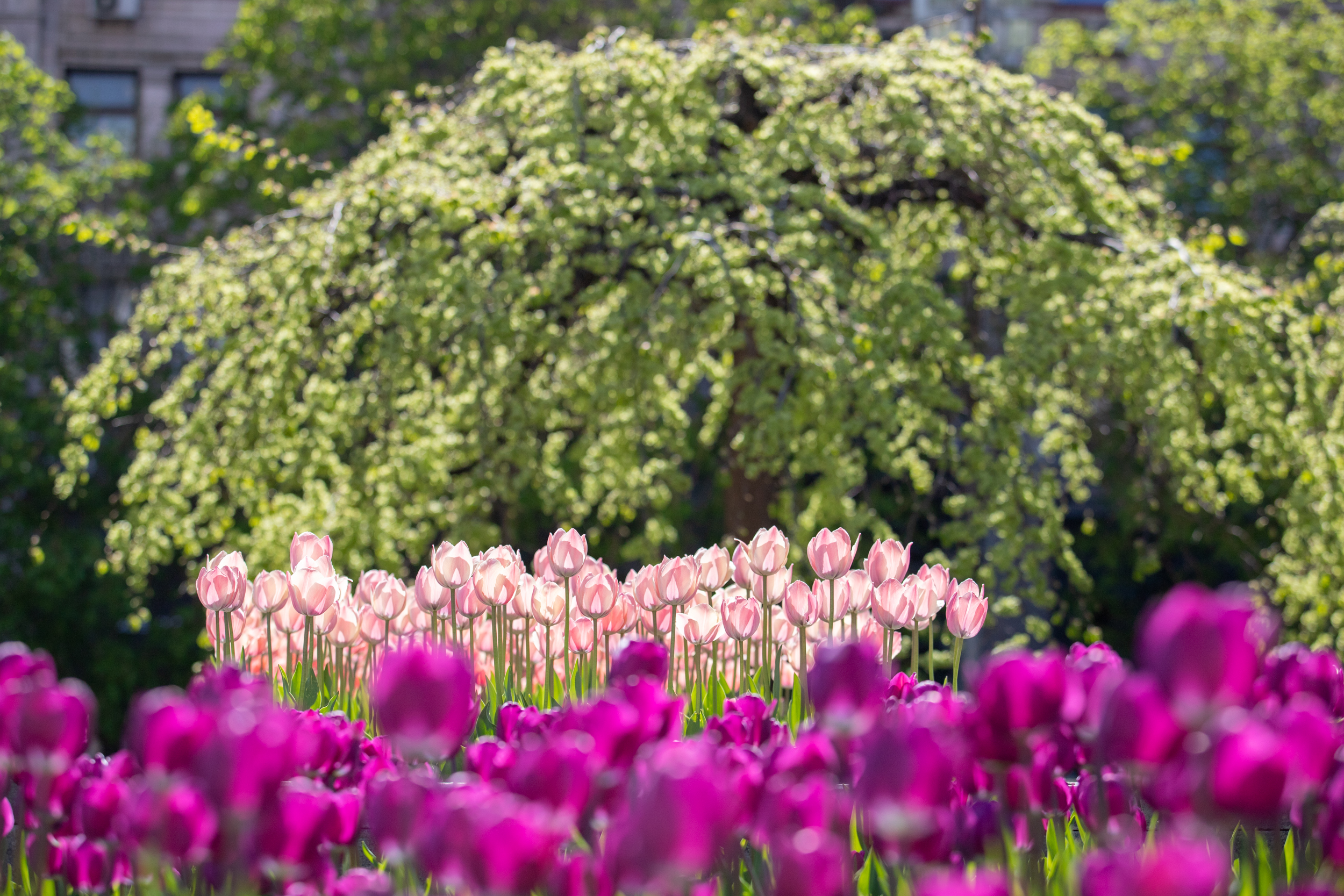 У центрі Києва розквітли сто тисяч тюльпанів, які пів року тому привезли з Нідерландів і посадили на знак шани героїв Небесної сотні.