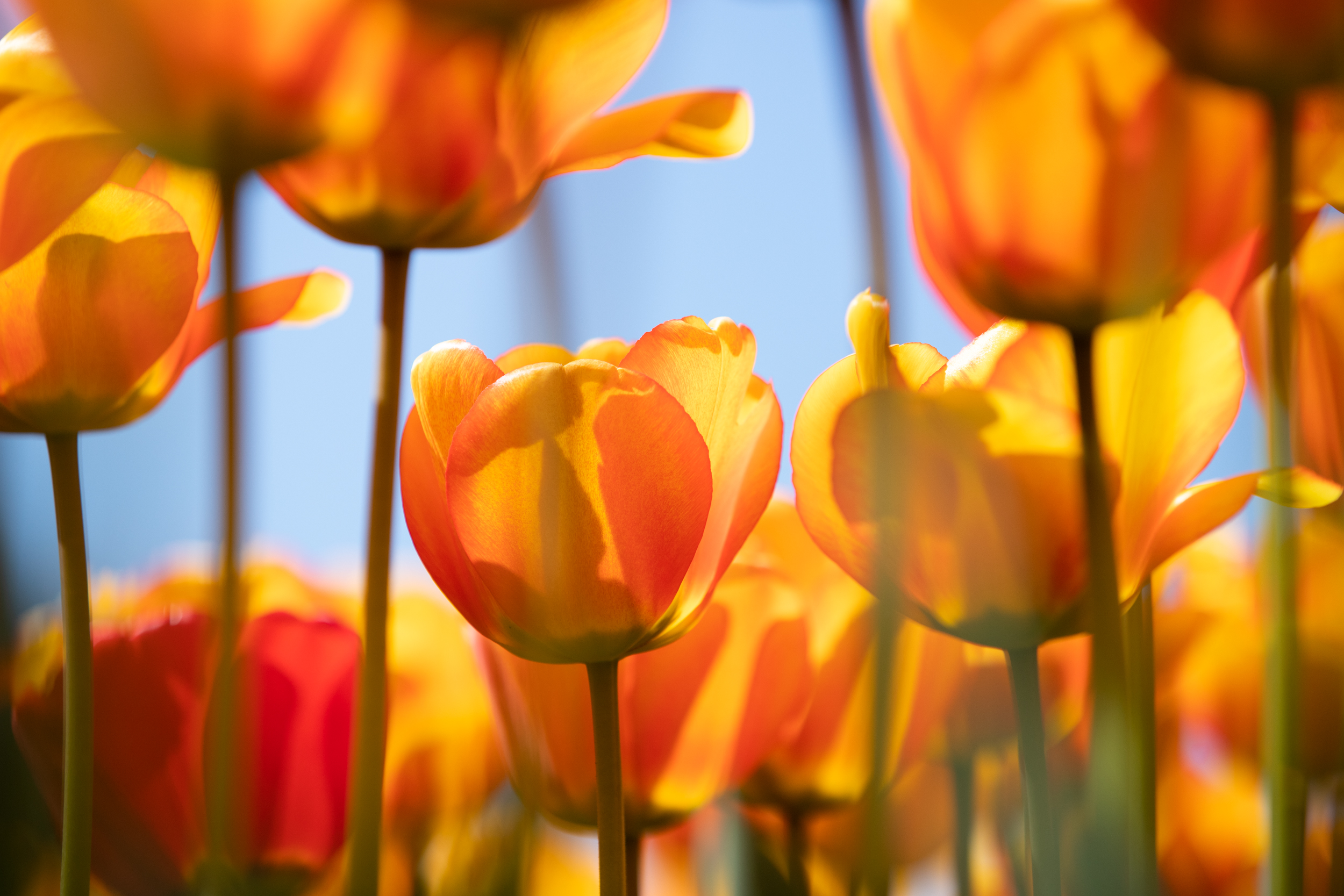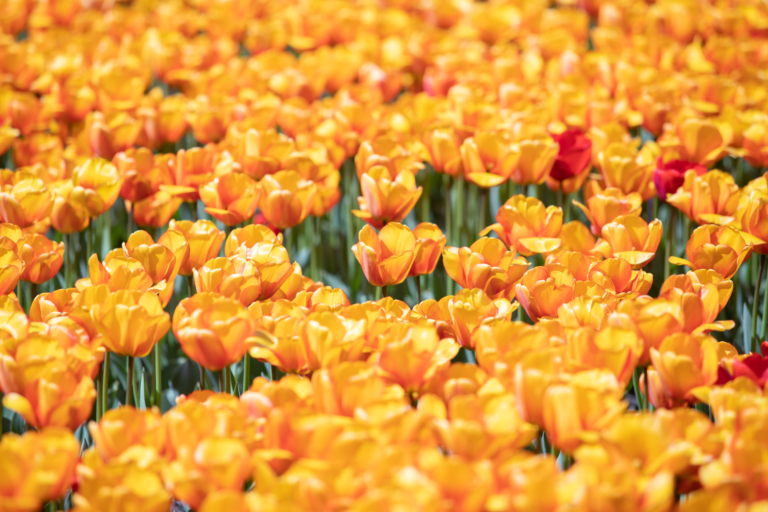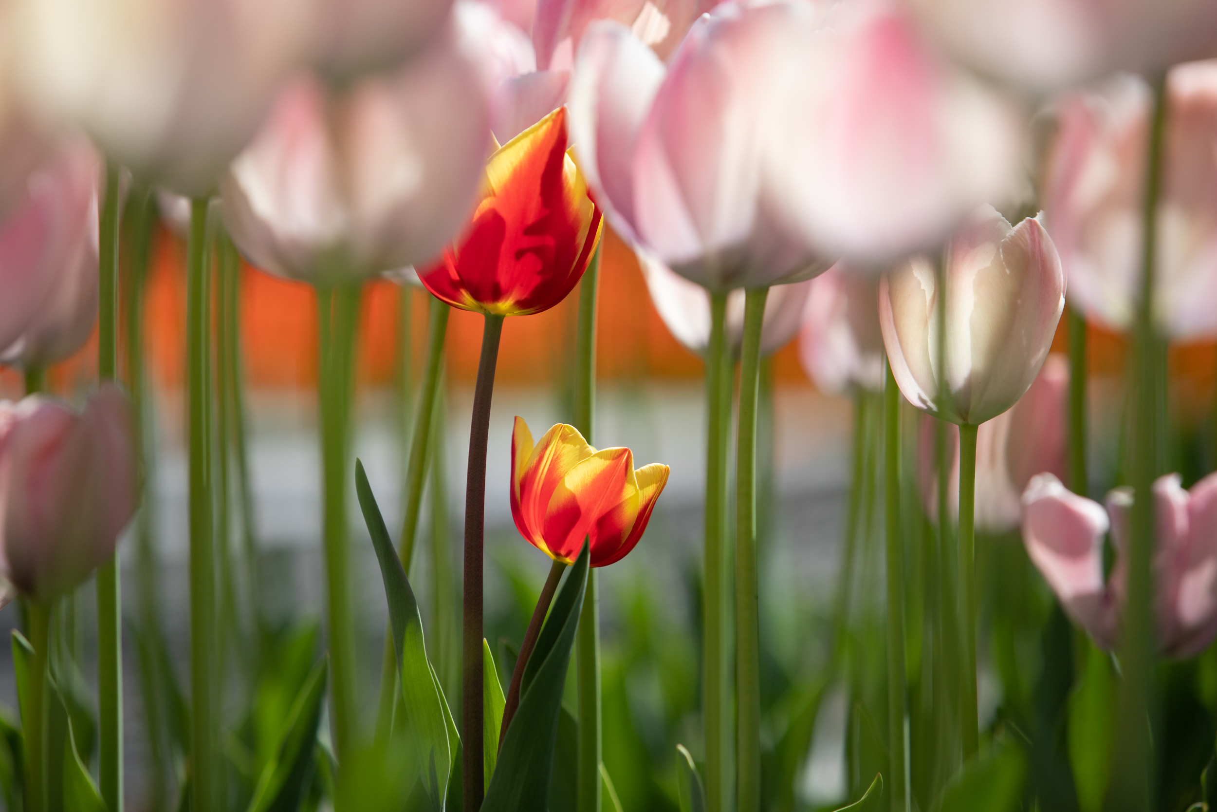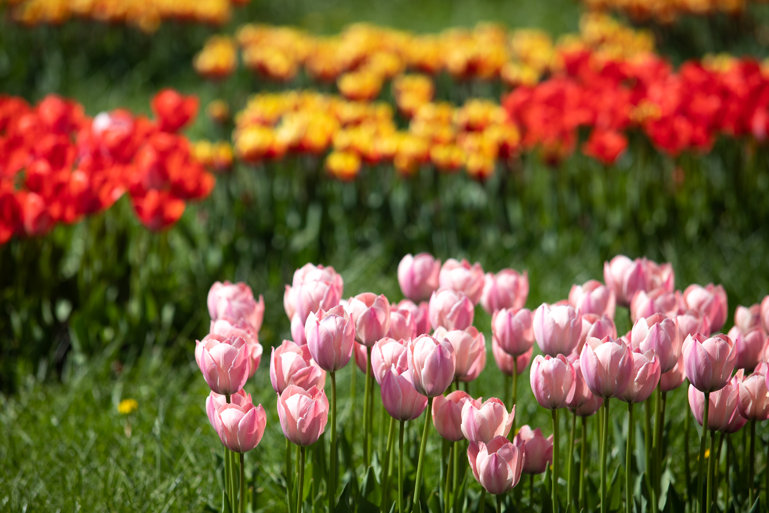 Сорти були підібрані за кольорами – жовті, жовтогарячі, червоні (Banjaluka, Blushing Apeldoorn, Jan Seignette, Orange Lion, Oranje van Eijk, Oranje Breeze), рожеві (Salmon van Eijk) та фіолетові (Negrita Purple). Залежно від сорту тюльпани мають різну висоту і створюють об’ємну картину. Об’ємність геометричним візерункам вдалося надати завдяки різній висоті квітів - від 40 до 60 см залежно від сорту.