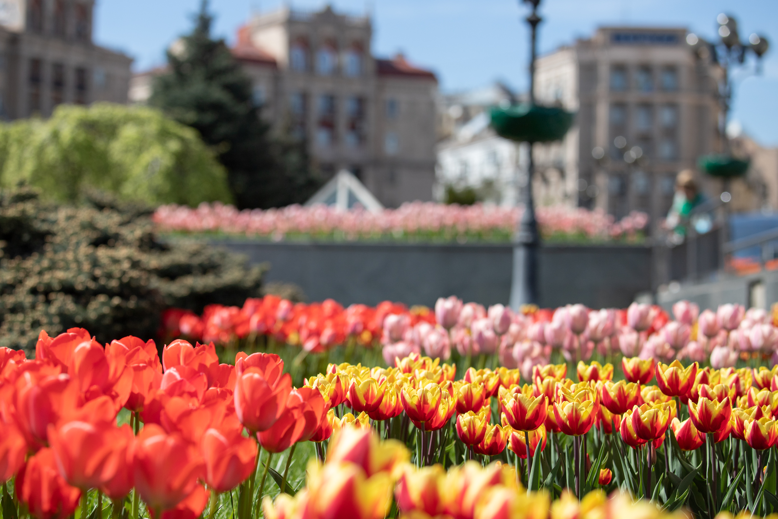 Голландські тюльпани зацвіли на клумбах Майдану Незалежності та біля будівлі Міністерства закордонних справ.