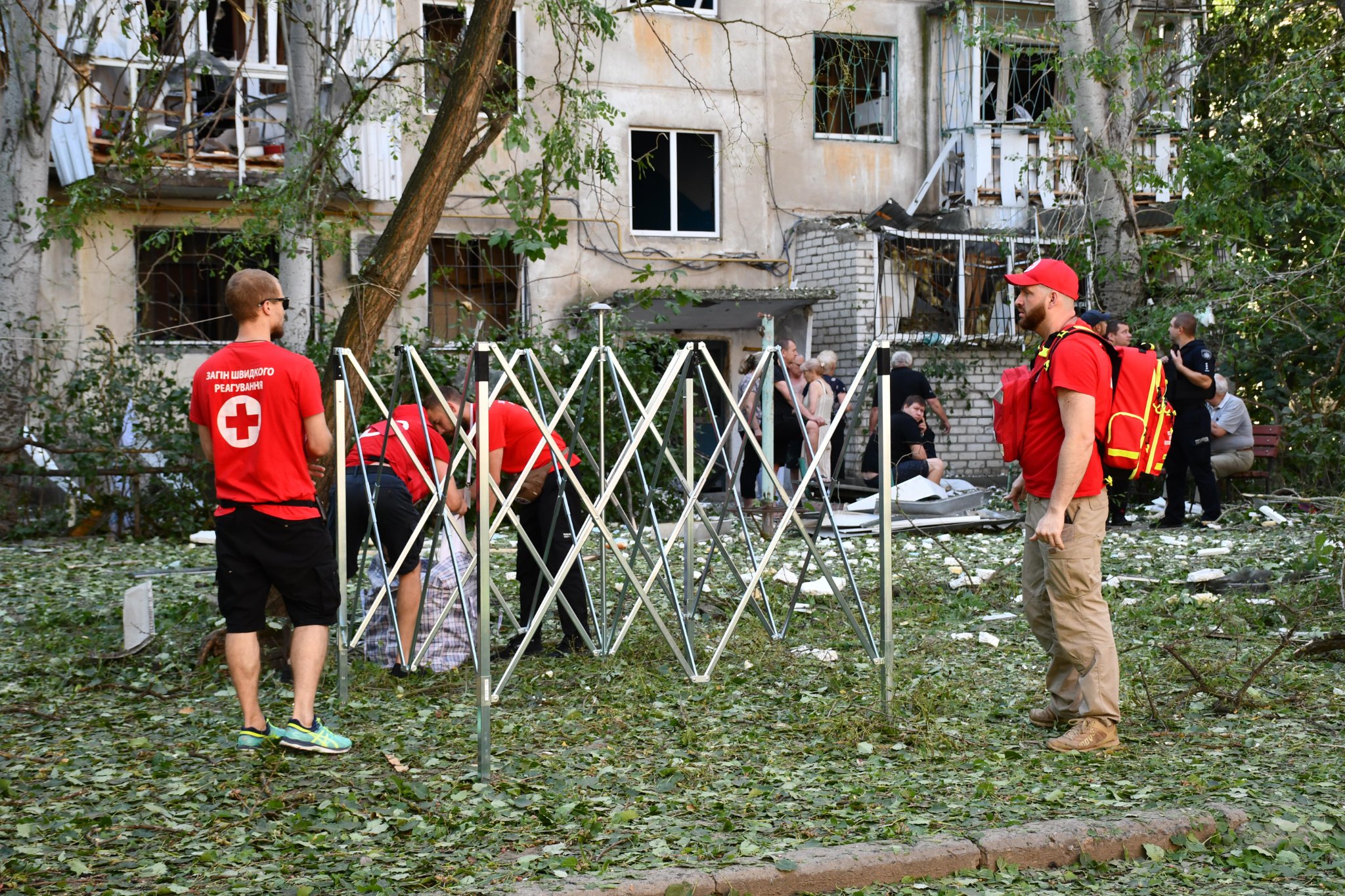 Загалом, до ліквідації наслідків ворожих обстрілів залучалося 9 одиниць спецтехніки ДСНС та 37 рятувальників, 22 бригади швидкої медичної допомоги, аварійні та комунальні служби міста, співробітники правоохоронних органів.