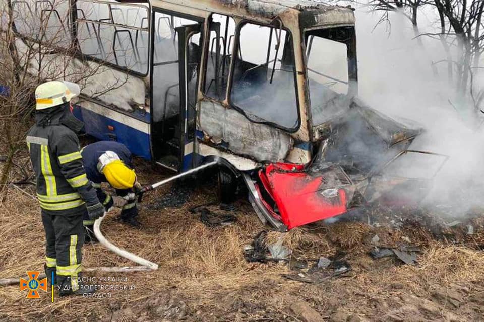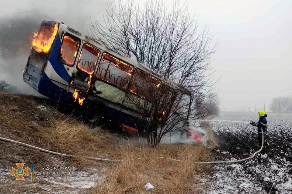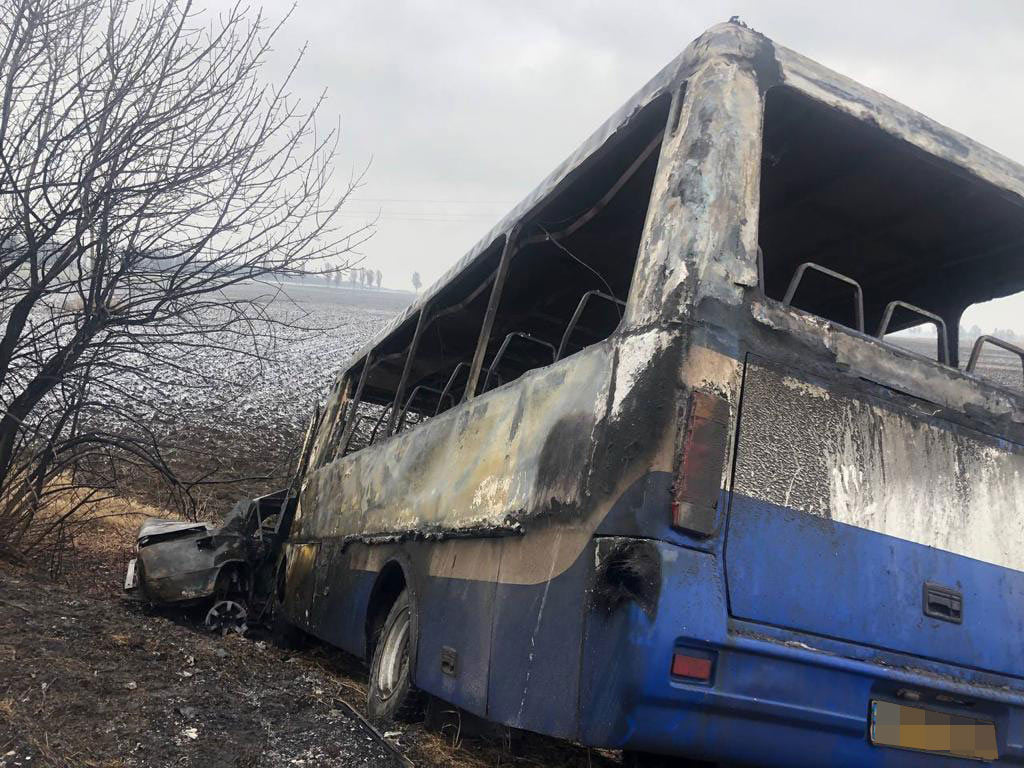 Зазначається, що на момент ДТП в автобусі перебувало 10 осіб та водій. Усі пасажири покинули автобус до прибуття пожежно-рятувального підрозділу.