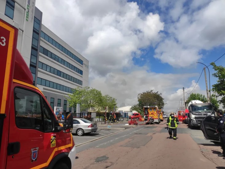 🇫🇷 #Bezons : Un incendie s'est déclaré dans une usine spécialisée dans le traitement de surfaces metalliques à Bezons, près d'#Argenteuil. pic.twitter.com/x0OisQ28yG