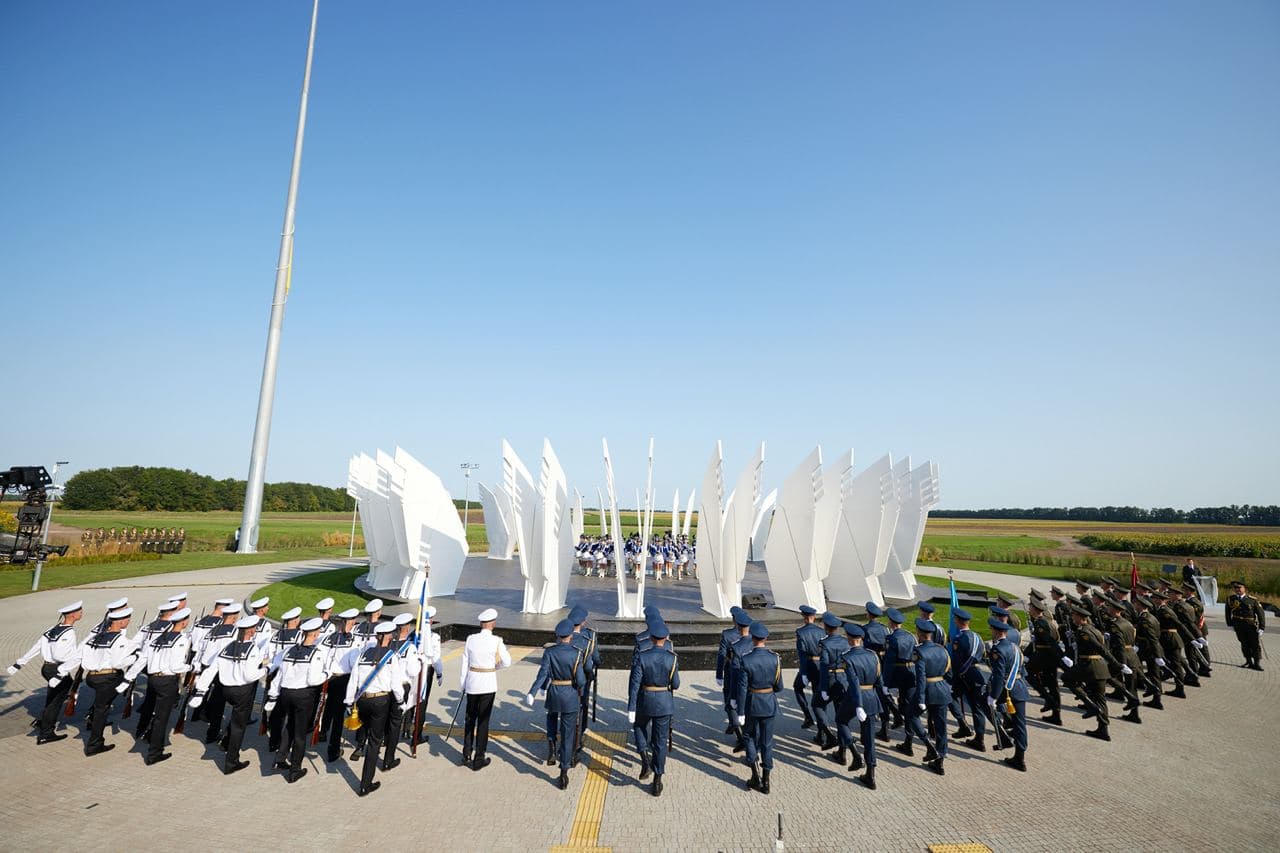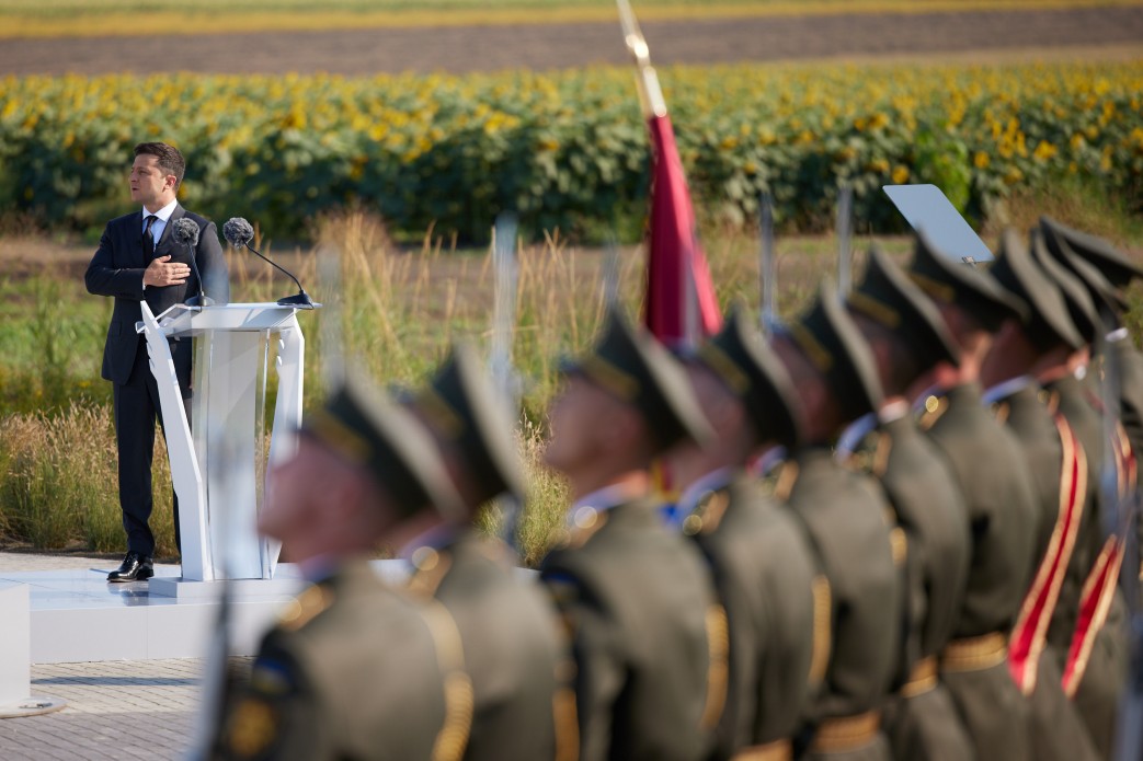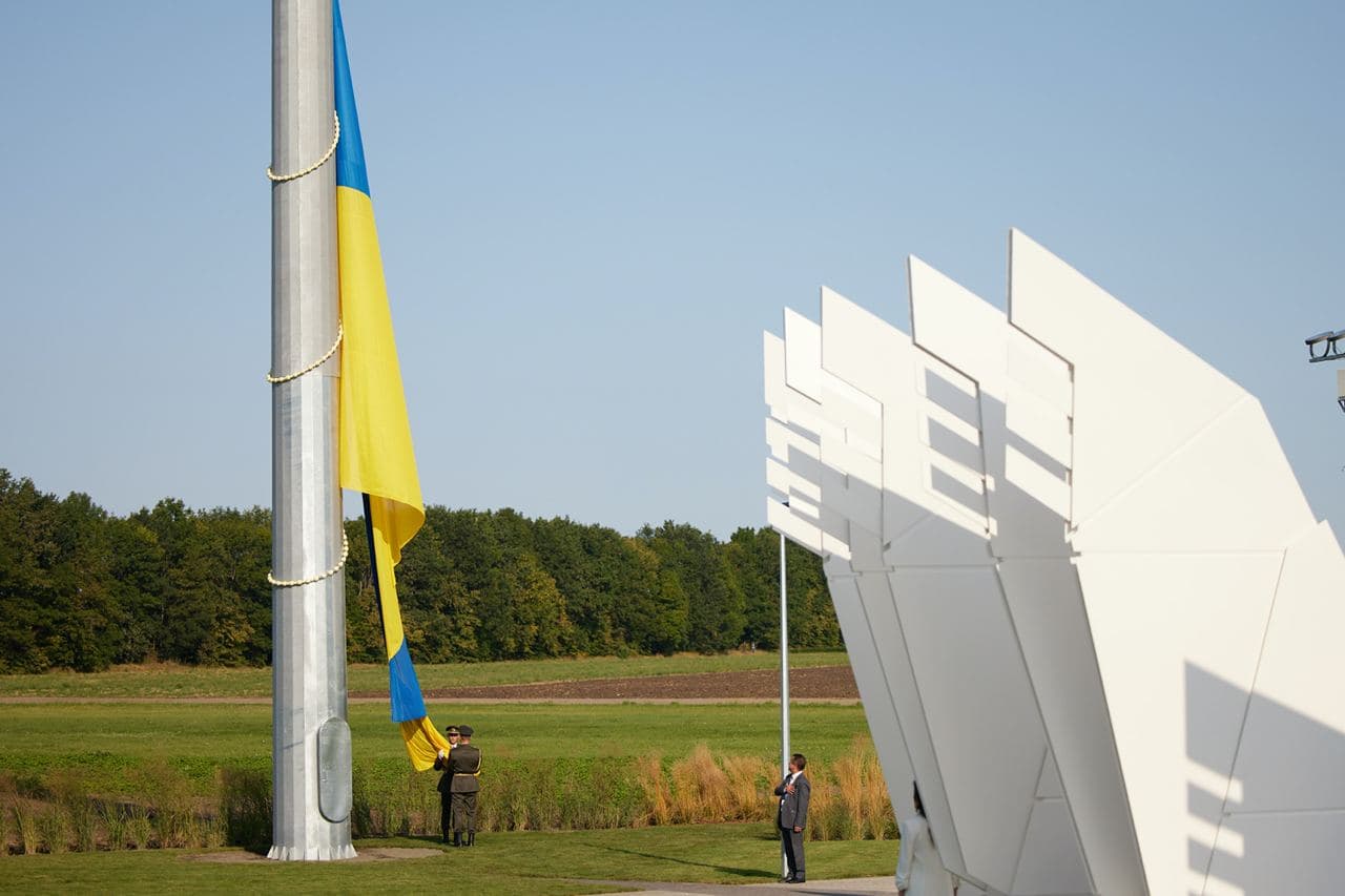 Саме тут б’ється серце України. Це артоб'єкт, навколо якого розташовано 25 сталевих крил, що уособлюють наші 24 області та наш Крим. Це дійсно символ того, що підійматися вгору та бути на висоті набагато легше разом. І сьогодні в небо одночасно здійматимуться тисячі наших державних прапорів. В усіх регіонах, в усіх містах, по всій Україні та за її межами, — сказав Зеленський.