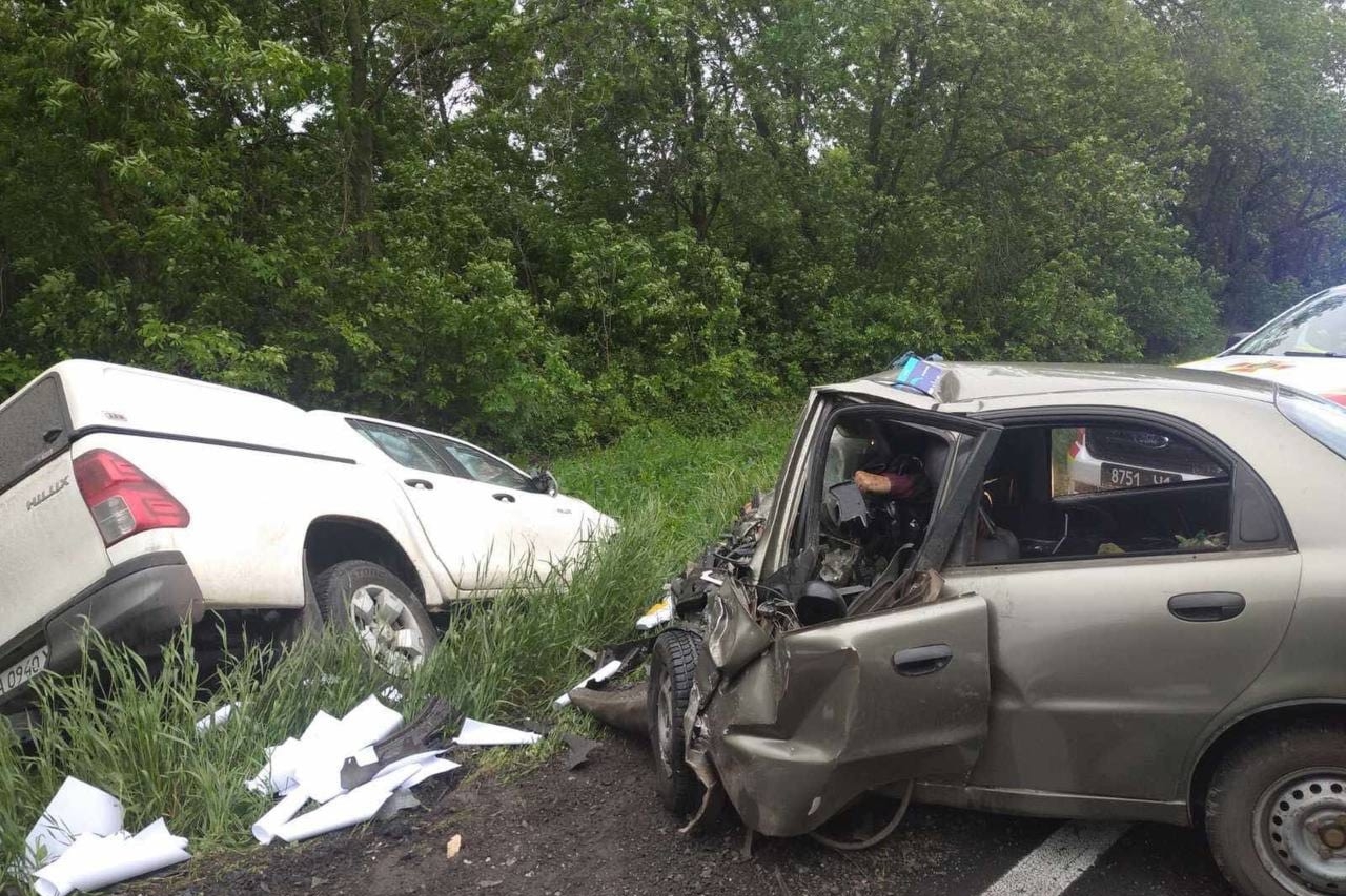 Зіткнулись автомобілі Toyota Hilux, який рухався зі сторони міста Куп’янська у напрямку Харкова, та Daewoo Lanos, що рухався у зустрічному напрямку.