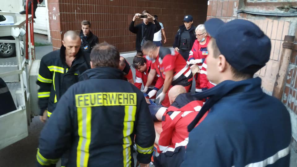 З даху чоловіка знімали рятувальники. Спочатку за допомогою драбини вони дісталися до місця падіння чоловіка. Той був у свідомості, однак кричав та поводив себе неадекватно та чинив супротив. Щоб не наражати на додаткову небезпеку постраждалого, рятувальники вирішили використати автоколінчатий підіймач.