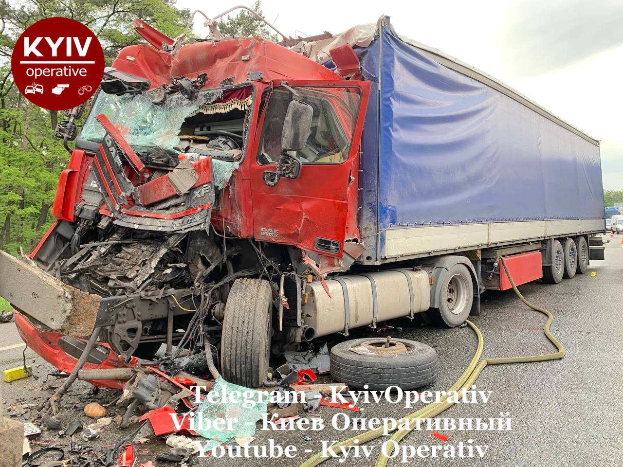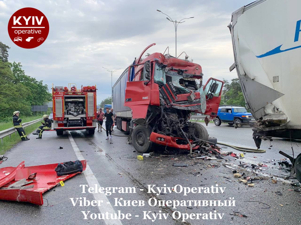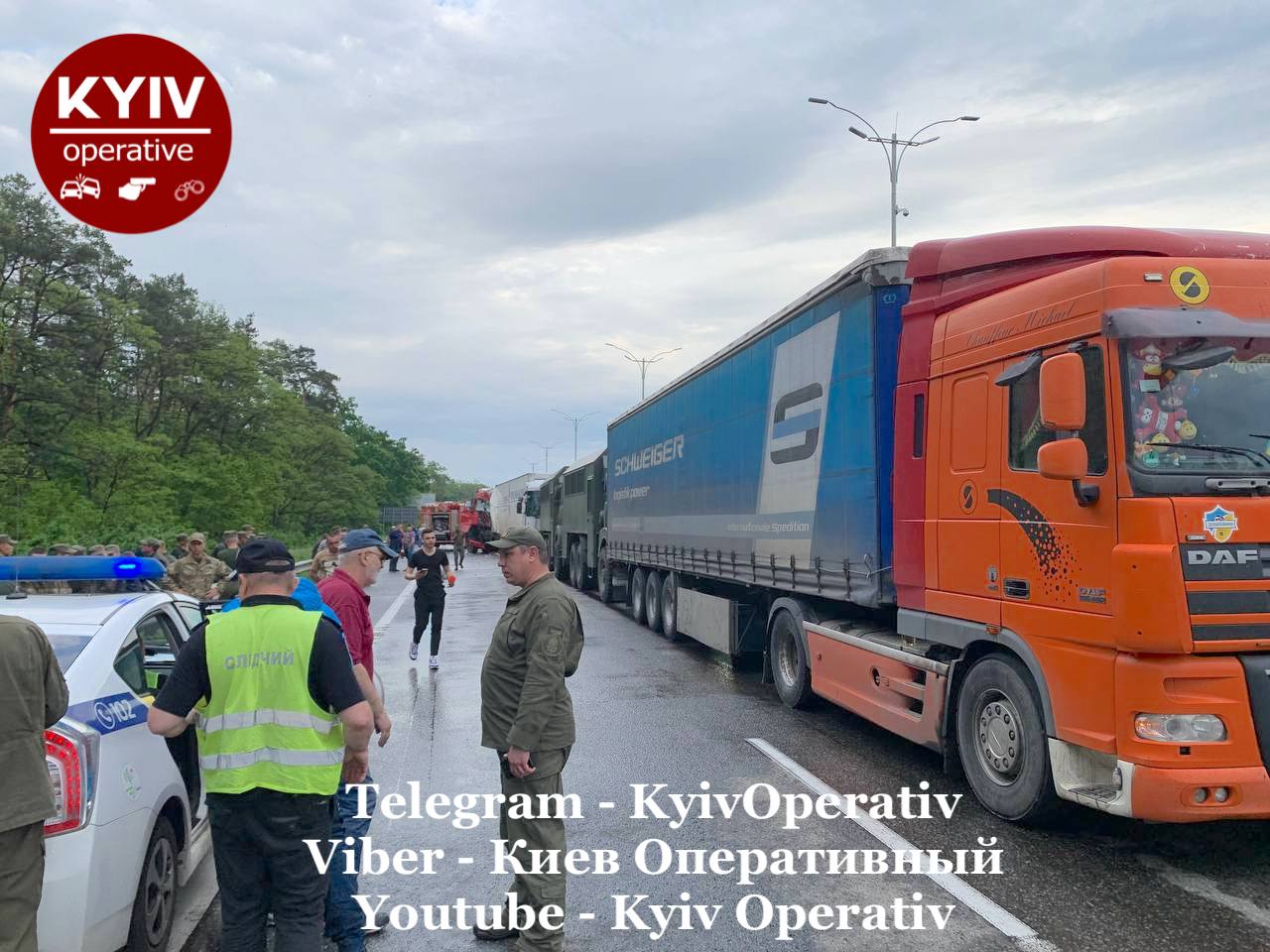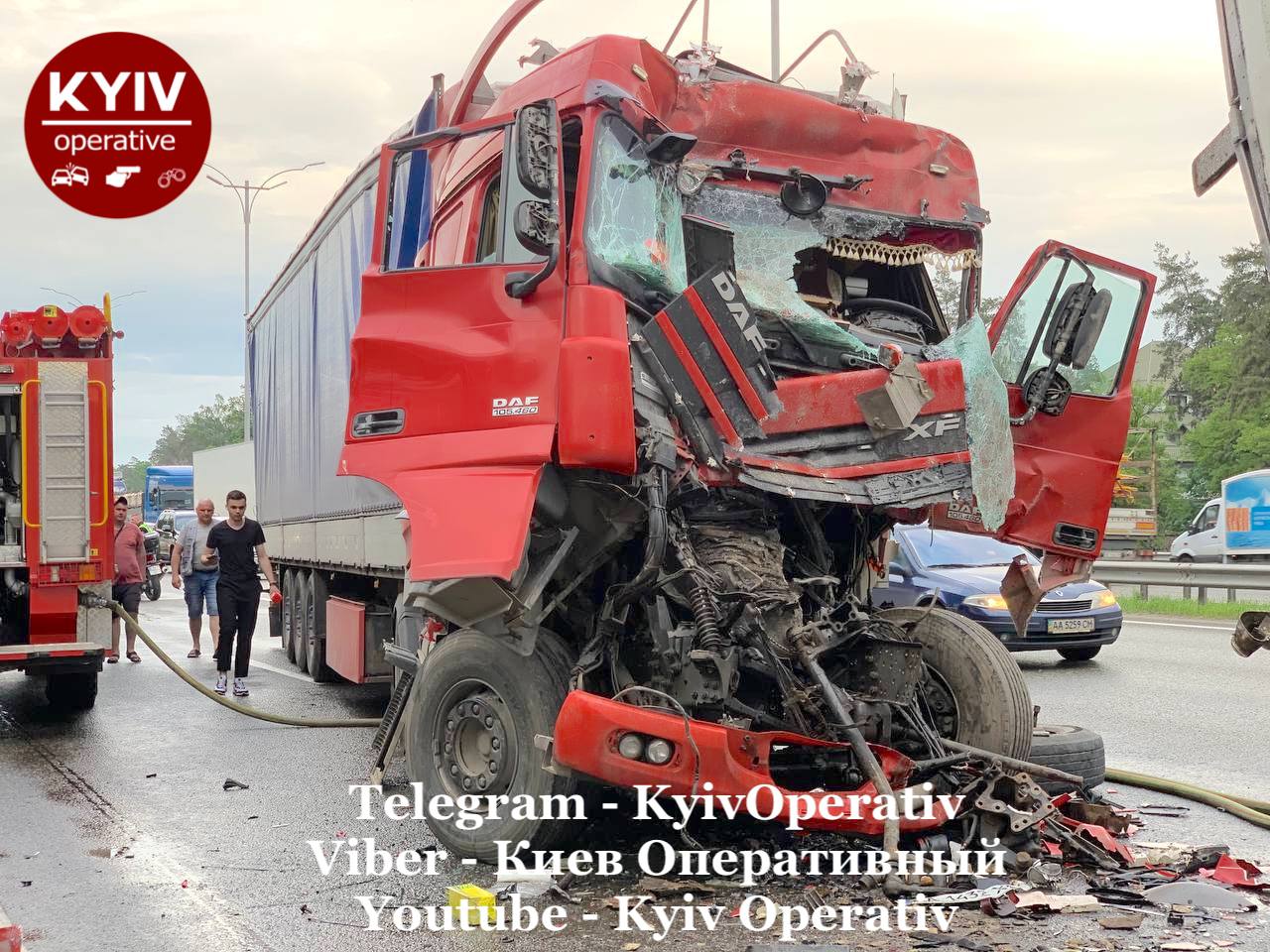 В якийсь момент всі учасники ДТП, а їх тут більше 50 осіб, відчули потужний удар позаду від вантажівки DAF (із червоною кабіною), - йдеться у повідомленні.
