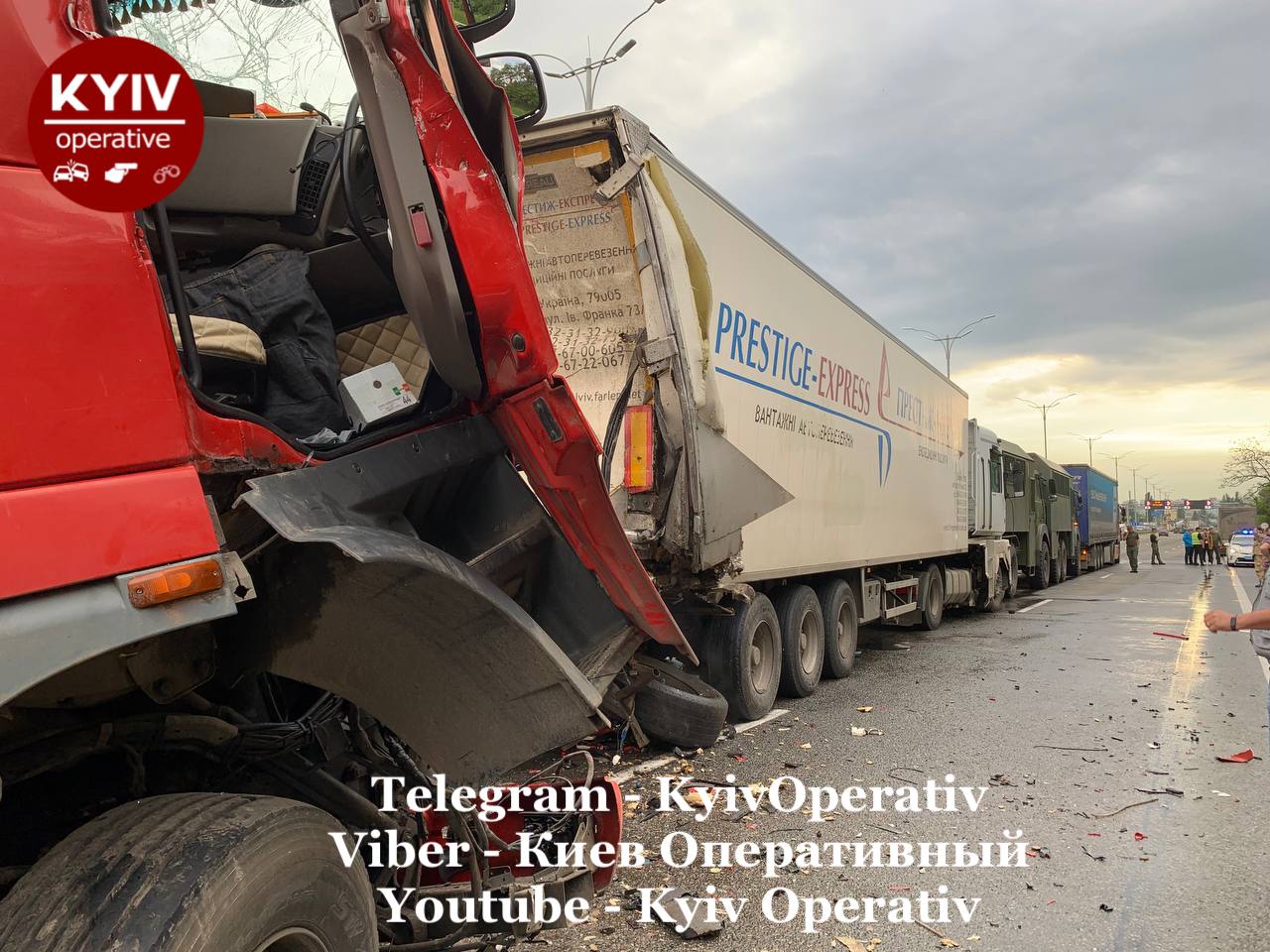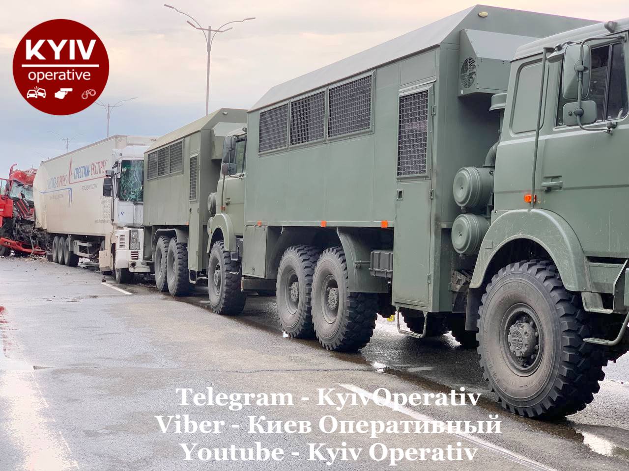 У Києві на Бориспільському шосе сталася масштабна дорожньо-транспортна пригода за участю п'яти вантажівок.