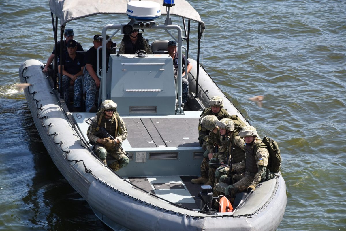 Учасники заходу провели тренувальне проходження малих броньованих артилерійських катерів Військово-Морських Сил з виконанням вправ радіоелектронної боротьби, катерів Держприкордонслужби, Нацполіції та ДСНС України.
