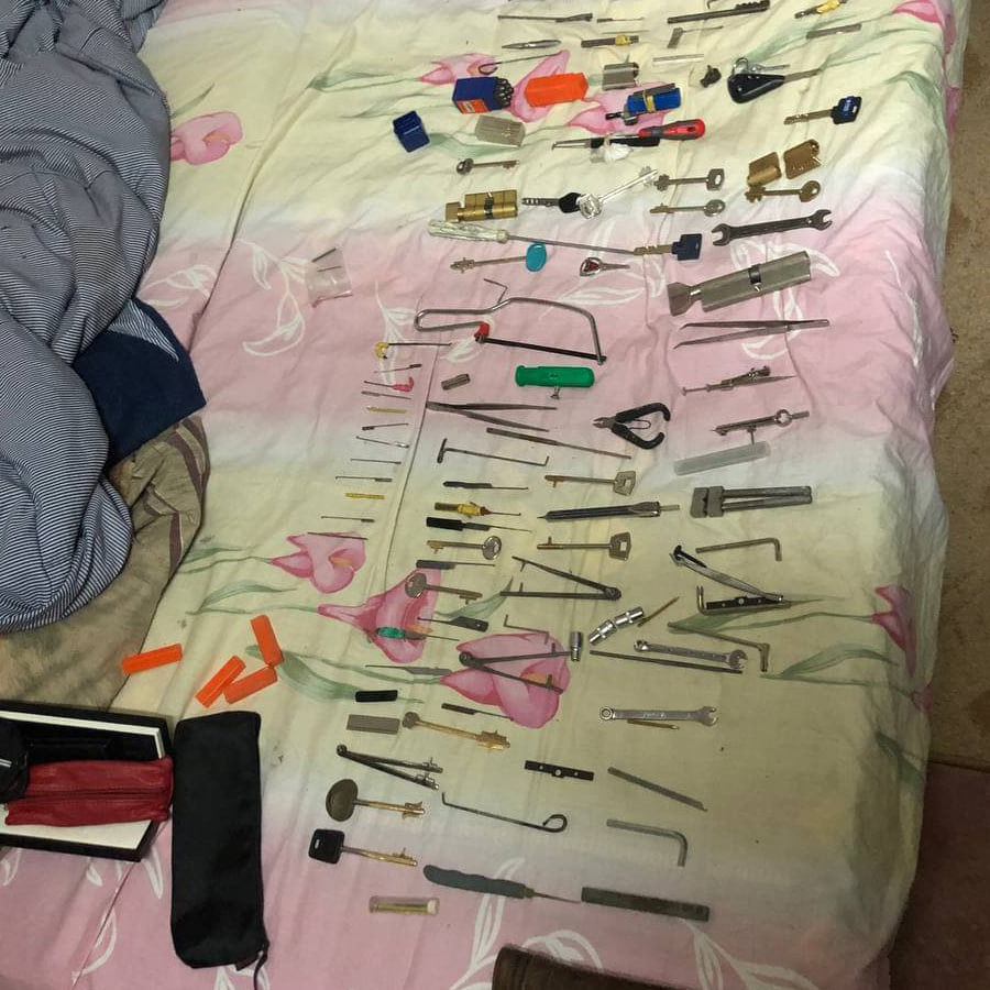 Правоохоронці провели п'ять обшуків за місцями проживання підозрюваних та знайшли речові докази, зокрема набір відмичок, за допомогою яких здійснювалося проникнення у житло.