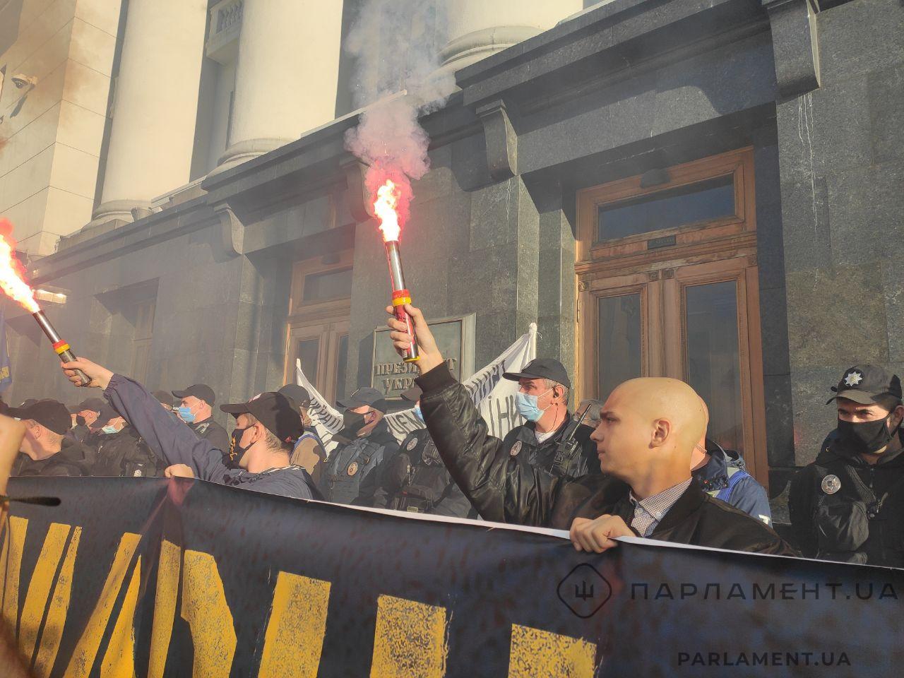 Пізніше учасники ходи прийшли під Офіс президента. Там вони запалили фаєри та передали Зеленському вимогу про ухвалення закону про колаборантів.