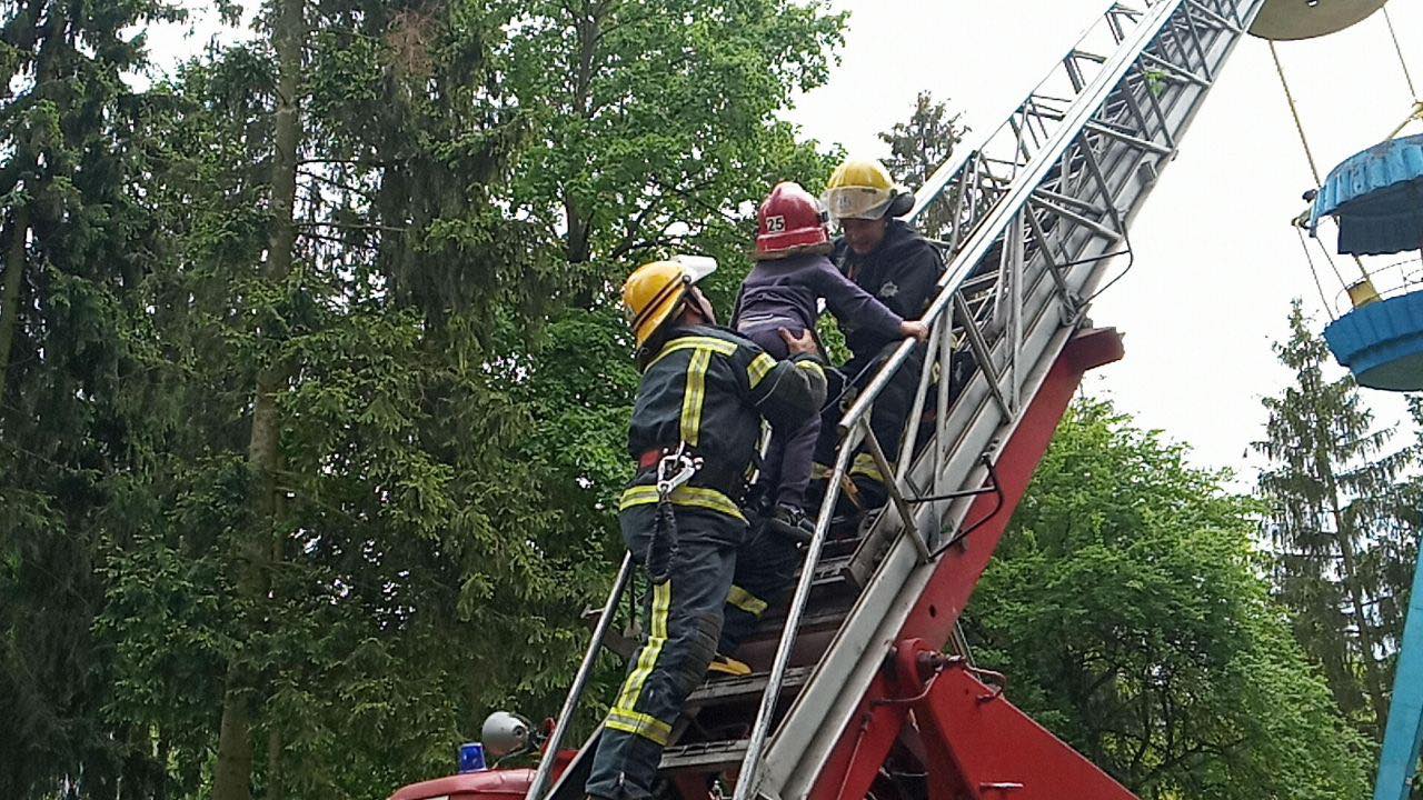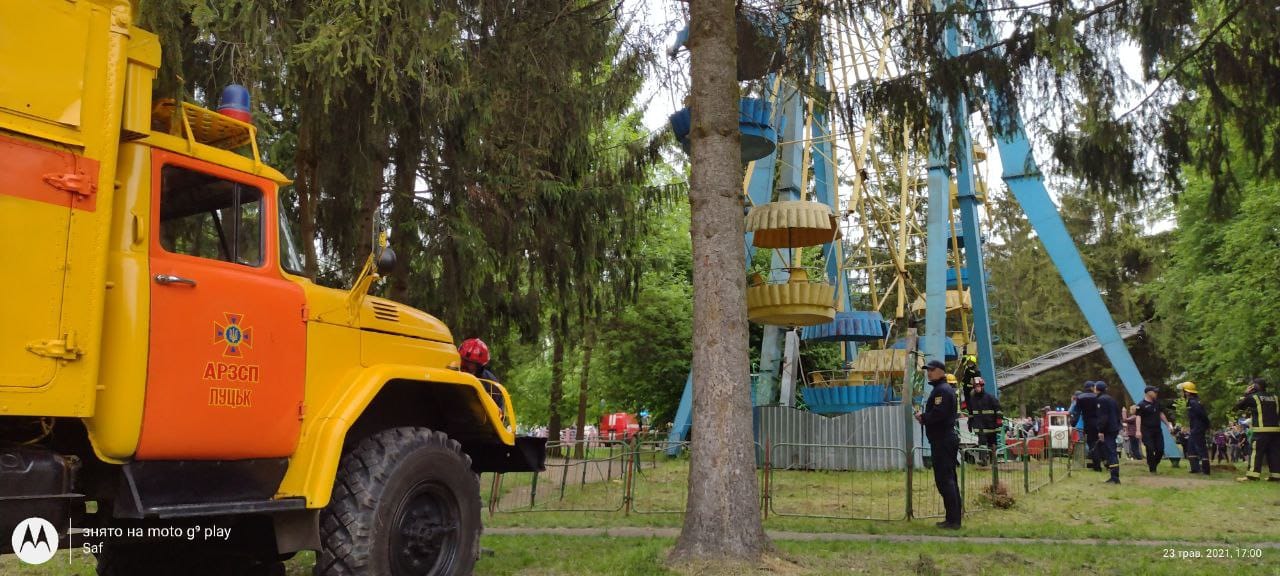 З атракціону "Колесо огляду" в парку відпочинку імені Лесі Українки в Луцьку врятували шістьох дітей та шістьох дорослих, що залишилися в кабінках на висоті через раптову зупинку атракціону.