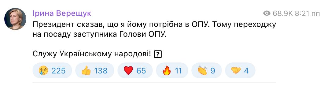 Олександр Камишін переходить в Офіс Президента, де продовжить займатися питанням озброєння та інфраструктури. Також в Офіс Президента переходить Ірина Верещук, яка буде працювати профільною заступницею керівника ОП.