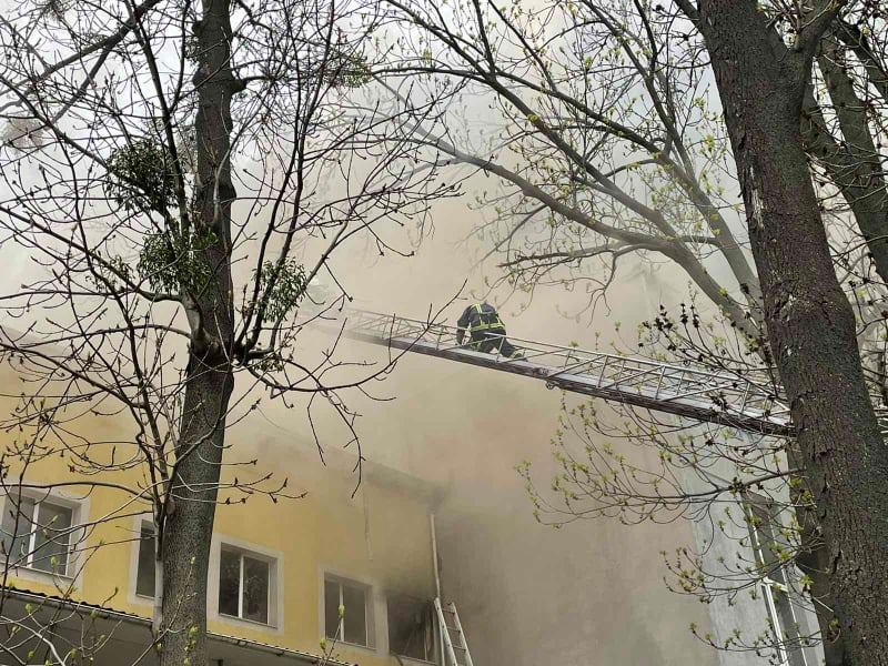 Станом на 13:05 вогнем охоплено третій поверх та дах. До гасіння залучили 50 осіб та 10 одиниць техніки.